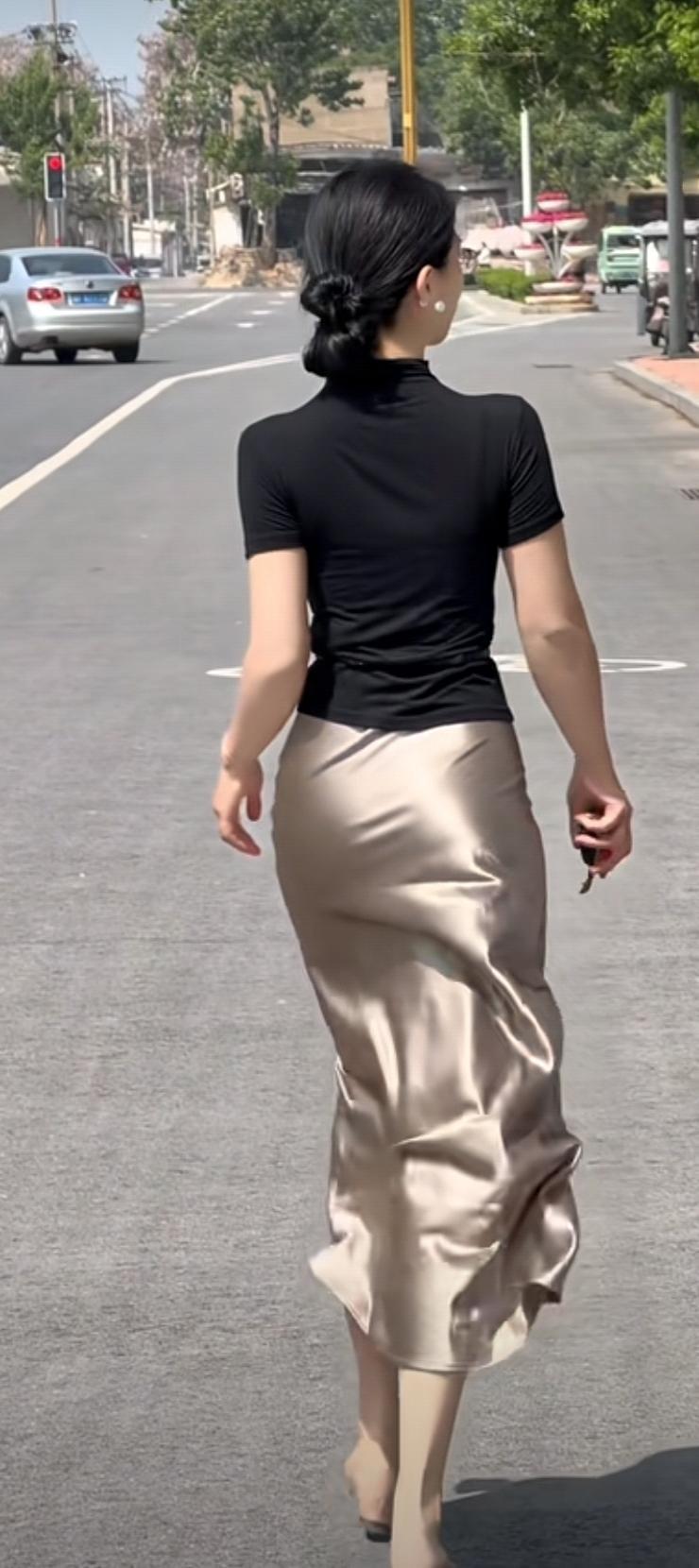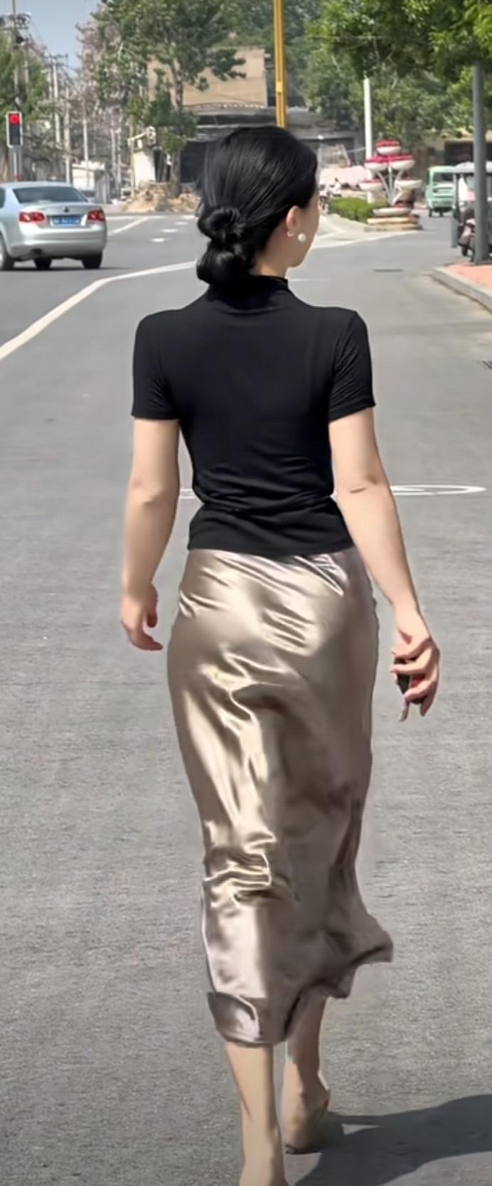 优雅黑衣搭配闪亮长裙,自信走在城市街头!这样的时尚造型,瞬间成为街头的焦点。阳光洒在她的身上,那闪耀的裙摆随着步伐轻轻摇曳,仿佛每一步都踏在时尚的节拍上。 路人纷纷投来羡慕的目光,有人忍不住小声赞叹她的穿搭品味,有人则悄悄拿出手机,想要记录下这美好的瞬间。 她迈着轻盈的步伐,穿梭在城市的繁华之中。走进咖啡店,柔和的灯光为她的优雅更添一份韵味。她坐在靠窗的位置,品着咖啡,那份自信从容,如同这城市中一颗璀璨的明珠,散发着独特的魅力。无论是在热闹的商场,还是静谧的公园,她的这身黑衣长裙搭配,都能完美融入不同的场景,展现出时尚与优雅的完美结合。