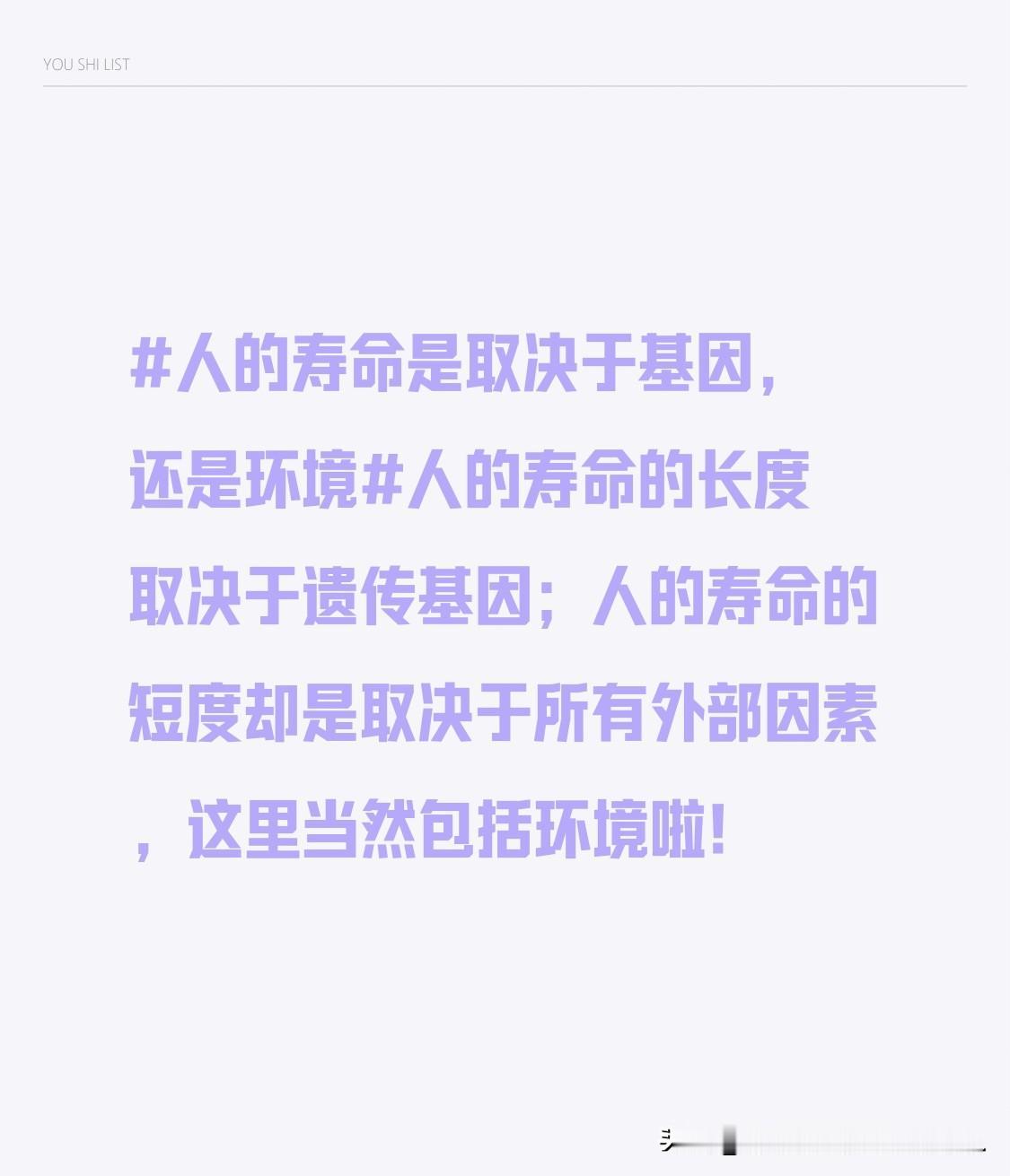 人的寿命的长度取决于遗传基因;人的寿命的短度却是取决于所有外部因素,这里当然包括环境啦!