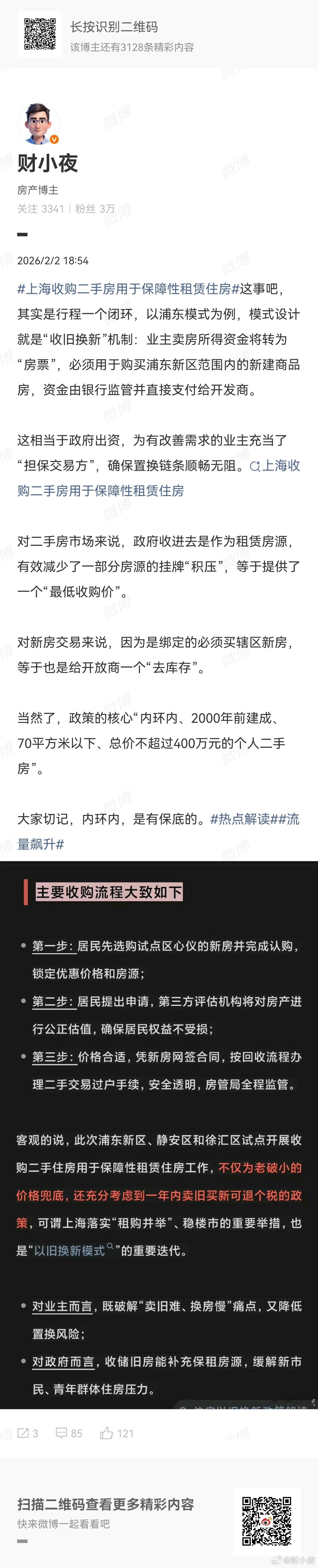 这说明消费在回暖,但和楼市"以旧换新"不是一回事。上次我说过,上海在静安、徐汇、浦东三个区推行房子以旧换新,政策的核心“内环内、2000年前建成、70平方米以下、总价不超过400万元的个人二手房”。网页链接