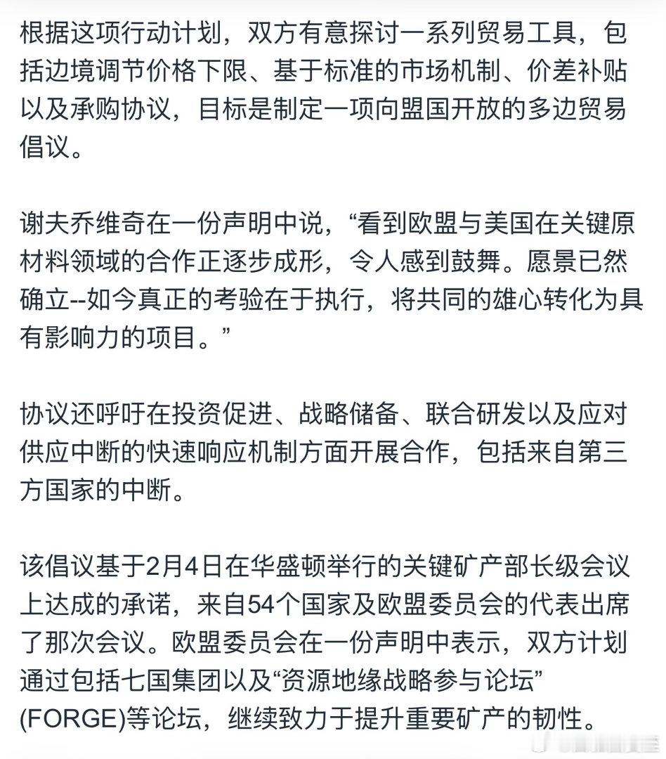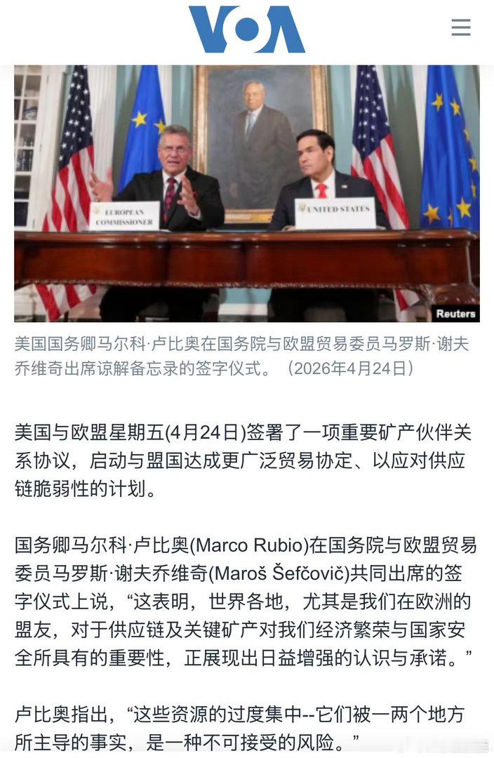美国与欧盟,今天在DC签矿产合作协议