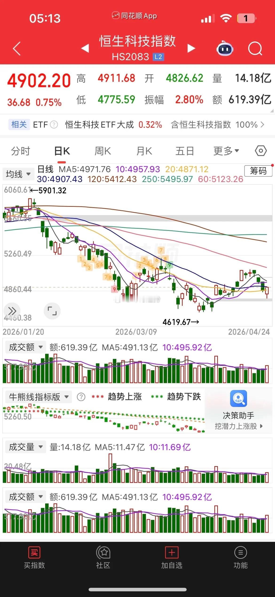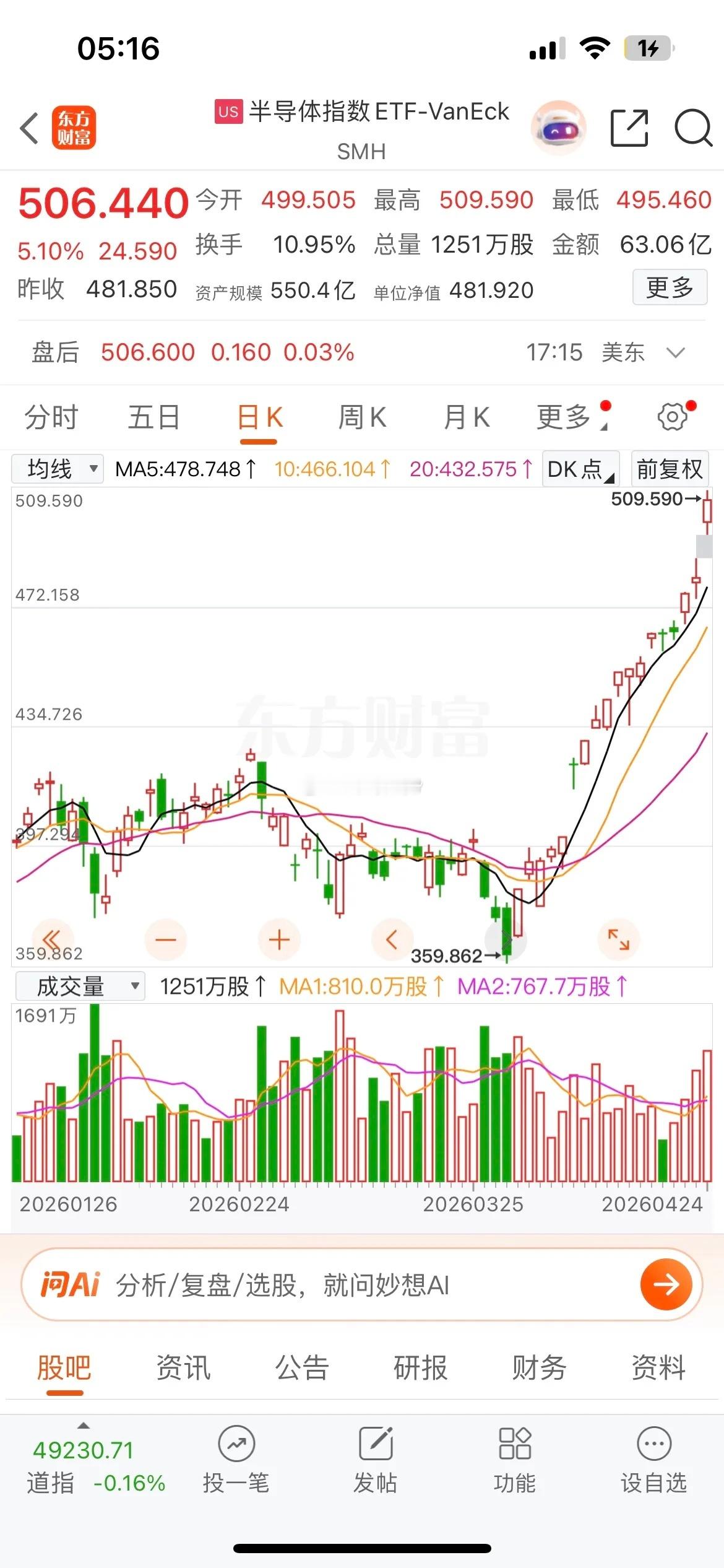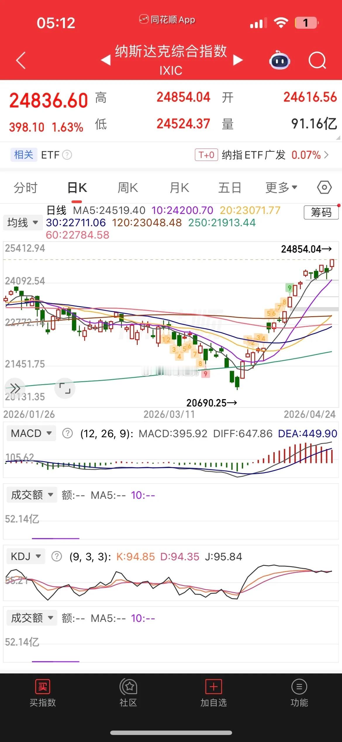 昨晚美股三大指数涨跌不一,道指跌0.16%,纳指涨1.63%,再创历史新高,大型科技股普涨,费城半导体大涨超5%,连涨18天,英伟达大涨超4%,市值突破5万亿美元,阿斯麦大涨近3%,特斯拉涨近1%,甲骨文大跌近2%,美光科技大涨超3%,闪迪大涨超6%,西部数据涨0.22%,台积电大涨超5%,AMD大涨近14%,英特尔暴涨近24%,因财报超预期,创近40年以来最大单日涨幅,这样看下周科技股估计还会接着舞。消息面上美伊将举行第二轮谈判。