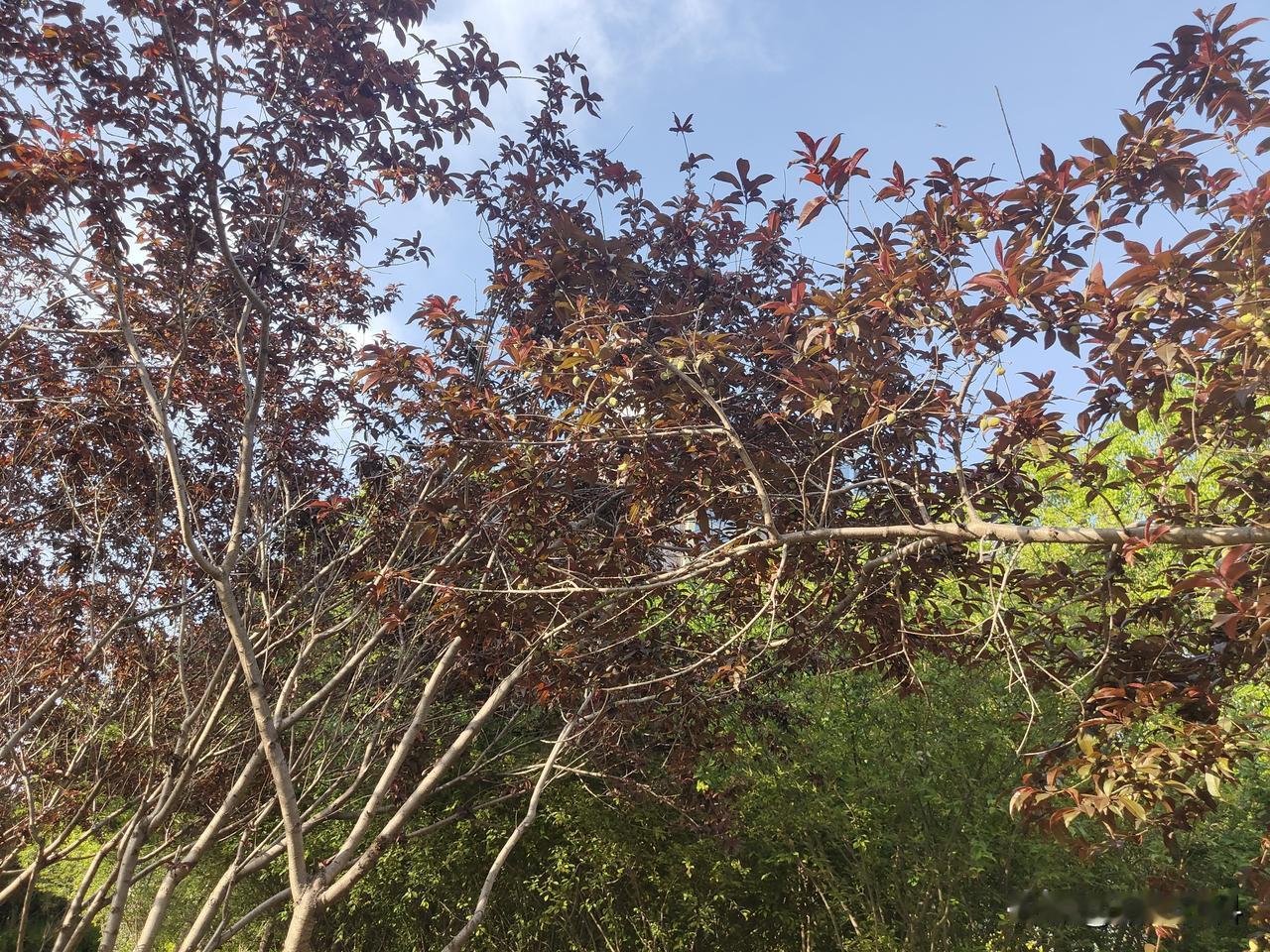 春日生活打卡季这就是春天留下的美好—红叶碧桃,紫红色的叶片间,点缀着白色的果实,格外显眼,看着这一株株桃树,观赏价值非常高,真是园林绿化不可缺少的树种。