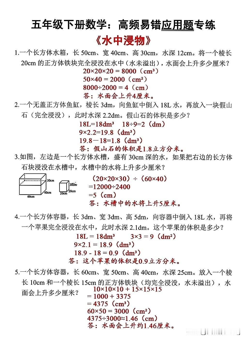 五年级下册数学期中达标练习,题目全面,知识点丰富!