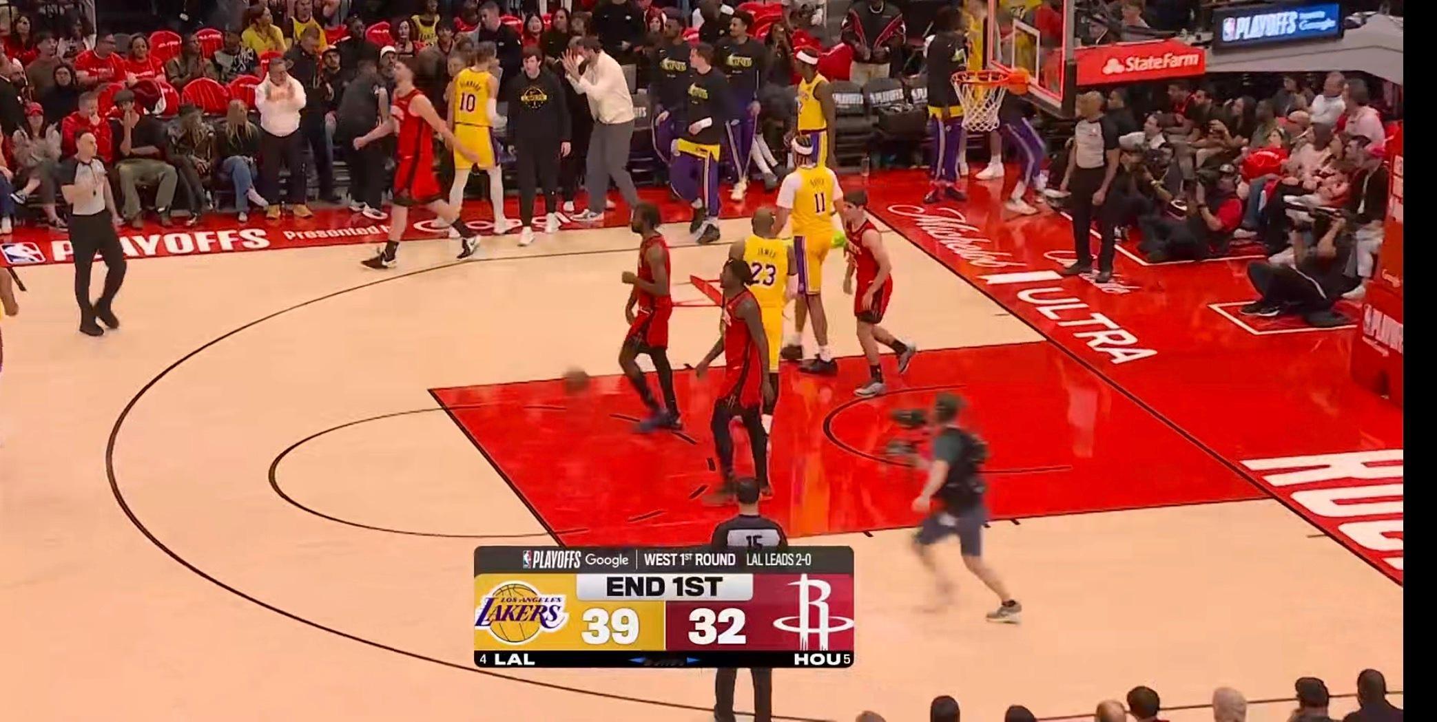 首节湖人39:32领先火箭7分,八村6中6拿16分!