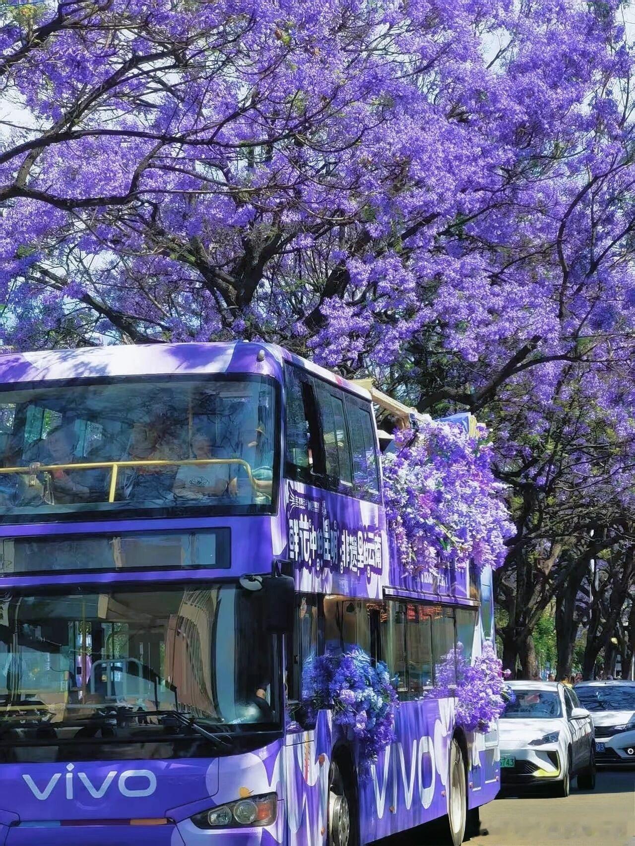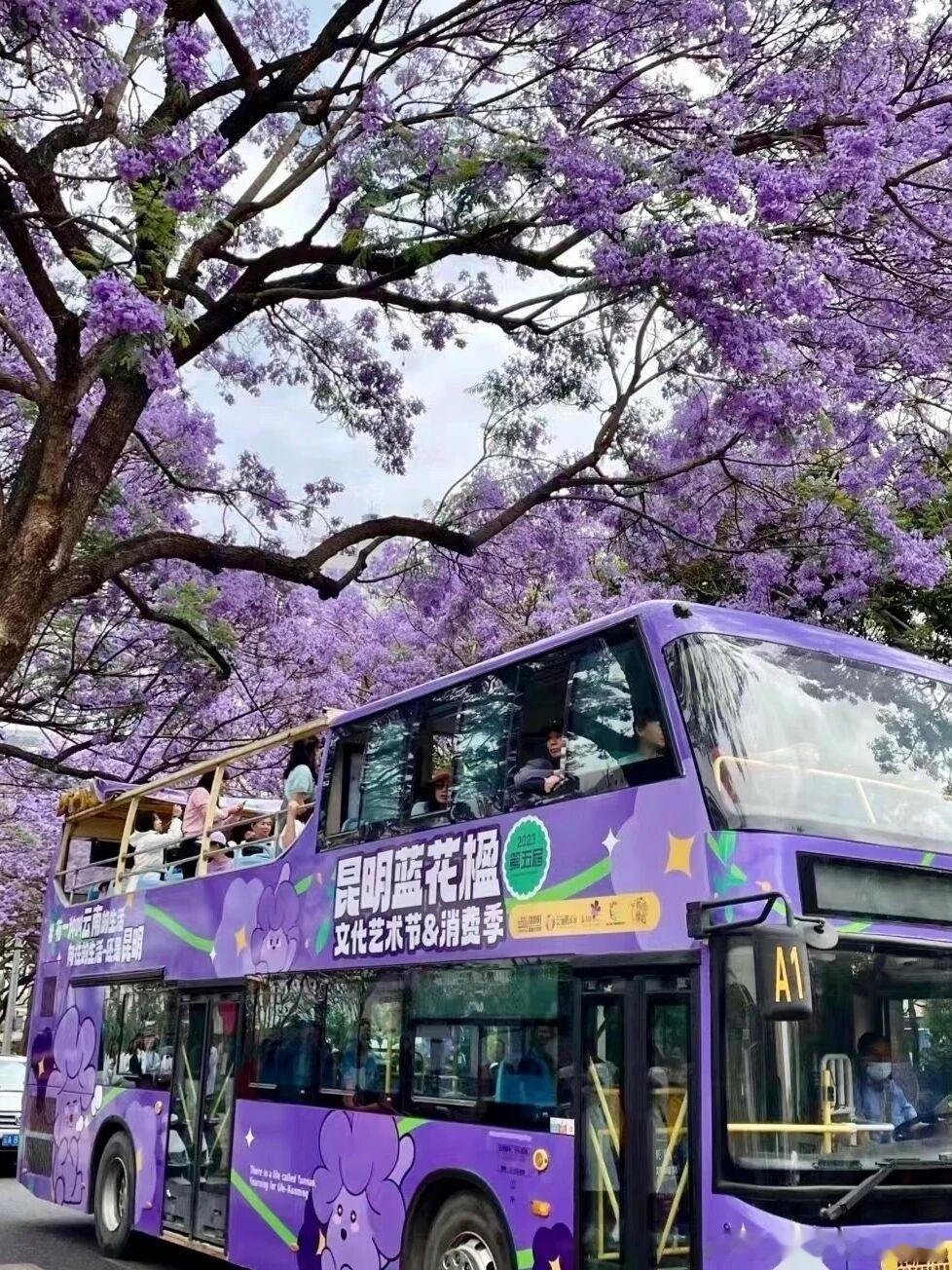 总要去一次昆明,坐一次蓝花楹观光巴士吧!