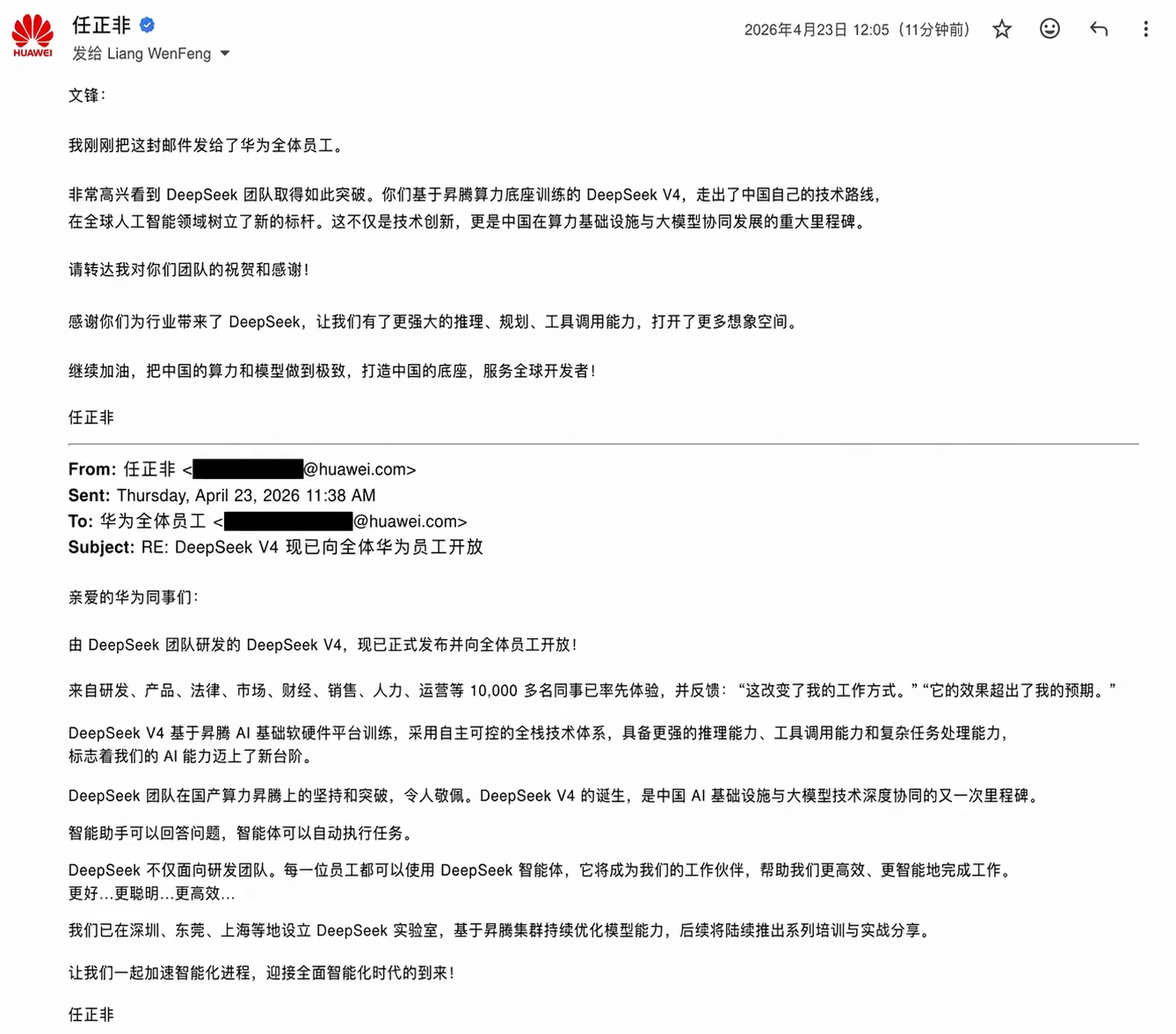 3. 真正的杀招:跑通国产算力闭环任正非的邮件,给它的定位是“中国算力基础设施与大模型协同发展的里程碑”,这句话的分量,比任何网红评测都重。基于华为昇腾算力底座训练的V4,实现了国产算力芯片与国产大模型的完美适配。这意味着,我们终于有了一套不依赖海外算力、完全自主可控的AI全栈体系,不再被“卡脖子”deepseekv4发布