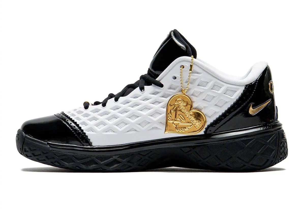 今年Kobe 3 Low「Mambacita」GS版本,依旧是白黑金三色打造,黑色漆皮的鞋头和后跟带有布洛克雕花工艺,后跟带有金色「GiGi」字样,并带有「Mambacita」金色吊坠,将于今年GiGi生日当天到来🐍🕊️