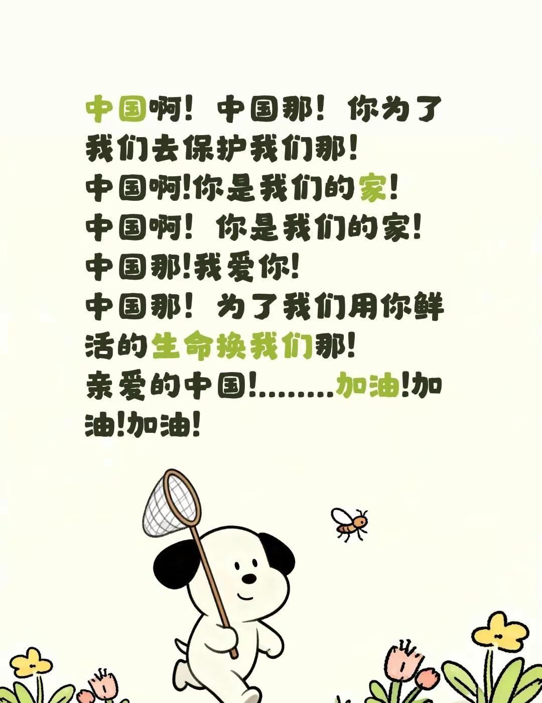 我评论了@无知 的作品:中国啊!中国那!你为了我们去保护我们那!中国啊!你是我们的家!中国啊!你是我们的家!中国那!我爱你!中国那!为了我们用你鲜活的生命换我们那!亲爱的中国!........加油!加油!加油!