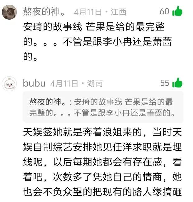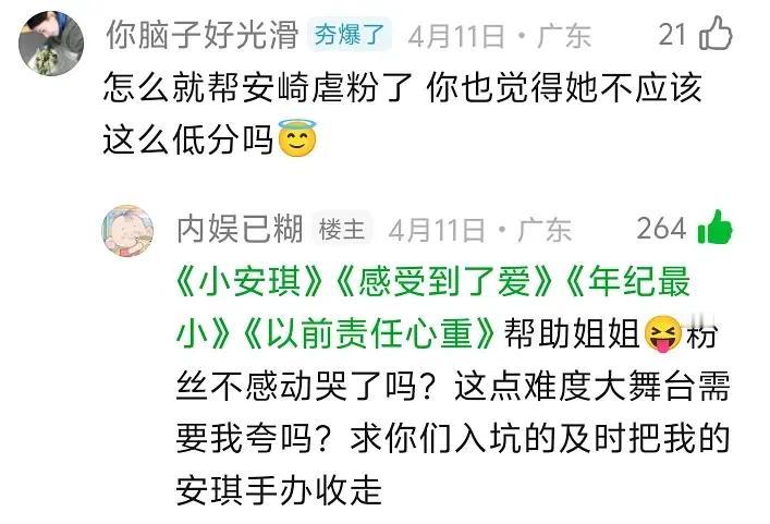 浪姐真有剧本?浪姐专组在一公前就预测了安崎一公分数必须低的离谱 ,大众就会爱怜安崎怜爱,后续直接大魔王剧本连上,基本全准了,但没想到二公直接就砸上了。 安崎是天娱的,所以才开始就是明牌不可能不皇,前面待遇那么差,只能解释为虐粉,毕竟大魔王剧本安崎拿了千万次,依然吸不到粉,这次必须换路线 其实之前埋的是她和李小冉萧蔷都有CP线,现在萧蔷这条用不了了,看看她后面会不会赘上李小冉。