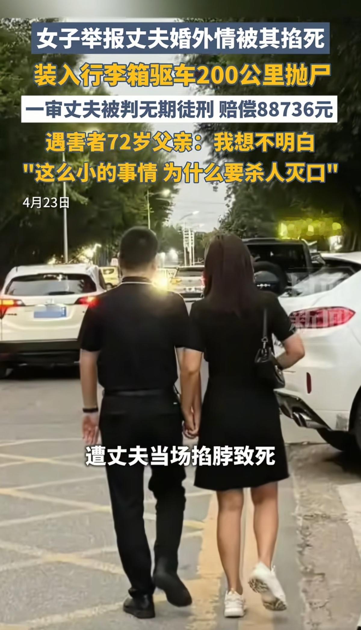 泪目。广东一名漂亮女子婚后仅5个月就被丈夫杀害,原因竟是女子要向丈夫单位举报他出轨,双方发生激烈争吵。女子父亲发现女儿失联遂报警,警方将目标锁定在丈夫身上,丈夫这才主动认罪,最终一审被判无期、赔偿88736元。 吃过了感情的苦,但凡下定决心再婚,一定会更加谨慎、懂得珍惜。 李女士独自生活了很久,对待感情一直格外慎重。 在外人眼里,男子完全是成功人士的模样,收入稳定、外表体面。 婚后没多久,男子就暴露了本性。 发现丈夫出轨后,李女士心里满是失望和寒心。 她没有像很多人一样忍气吞声,也没有单纯地吵架发泄情绪。 她直白地告诉对方,如果不妥善处理好这段不正当关系,彻底改正问题,她就会直接去他的工作单位举报。 对于普通上班族来说,婚内出轨只是私人道德问题,但对于身居管理岗位的男子来说,这就是致命的弱点。 一旦被公司查实、公开通报,他辛苦多年打拼下来的一切都会化为泡影,不仅工作不保,在整个行业内都会彻底失去立足之地。 就是这句最正常的维权表态,彻底激怒了内心阴暗的男子。 平日里儒雅体面的成年人外壳瞬间碎裂,暴露了他极端又暴躁的本性。 从最初的言语争执,慢慢升级为激烈的对峙,过往所有的琐碎矛盾、感情隔阂、利益纠纷全部翻了出来。 彻底失控的男子,完全丧失了理智,心里只想着阻止妻子举报自己、堵住妻子的嘴。 情急之下,他直接伸手死死掐住妻子的脖颈,丝毫没有顾及夫妻情分,手段凶狠又决绝。 他心里十分清楚,故意杀人是性质极其严重的重罪,一旦被警方发现,自己的人生将会彻底覆灭。 为了不被追责,他铁了心要销毁所有证据,试图让这件事彻底无人知晓。 他找来行李箱,冷静地将妻子的遗体收纳进去,随后一点点擦拭家里的痕迹,清理打斗留下的印记,擦掉屋内的指纹和杂物,把案发现场伪装得完好无损,让人看不出丝毫异常。 等到深夜凌晨,街道上行人稀少、车流锐减,路面监控也很难捕捉细节,他独自开车,载着装有遗体的行李箱,踏上了两百多公里的路途。 整整数个小时的车程,他全程心态平稳,没有丝毫慌张,一心只想找一个隐蔽的地方藏尸。 抵达偏远荒芜的河边水域后,确认四周荒无人烟,不会有人路过,他立刻将行李箱推入水中,借着深水掩盖一切罪恶,妄图让真相永远沉入水底。 焦急的老人一遍遍拨打女儿电话,始终无人回应。 万般无奈之下,他只能主动联系女婿,询问女儿的去向。 面对长辈的追问,男子谎话张口就来,一会儿说妻子出门散心,一会儿说手机坏了没法联系,各种敷衍的借口层出不穷。 老人隐约察觉到事情不对劲,心里越来越慌,他清楚,女儿绝对不是无故失联,大概率是遭遇了意外。 经过调查后,民警发现,所有的线索和疑点,全部指向了男子。 至此,这起令人发指的杀妻抛尸案彻底水落石出,残忍的作案细节曝光后,无数人为之震撼。 经审理,案件迎来了一审判决。 对于凶手而言,保住了性命,可对于受害者的家庭来说,却是毁灭性的打击。 更让人没想到的是,凶手也不甘于无期徒刑的判决,选择了上诉。 对于这件事,您有什么想说的吗?欢迎评论区留言讨论。 信息来源:封面新闻