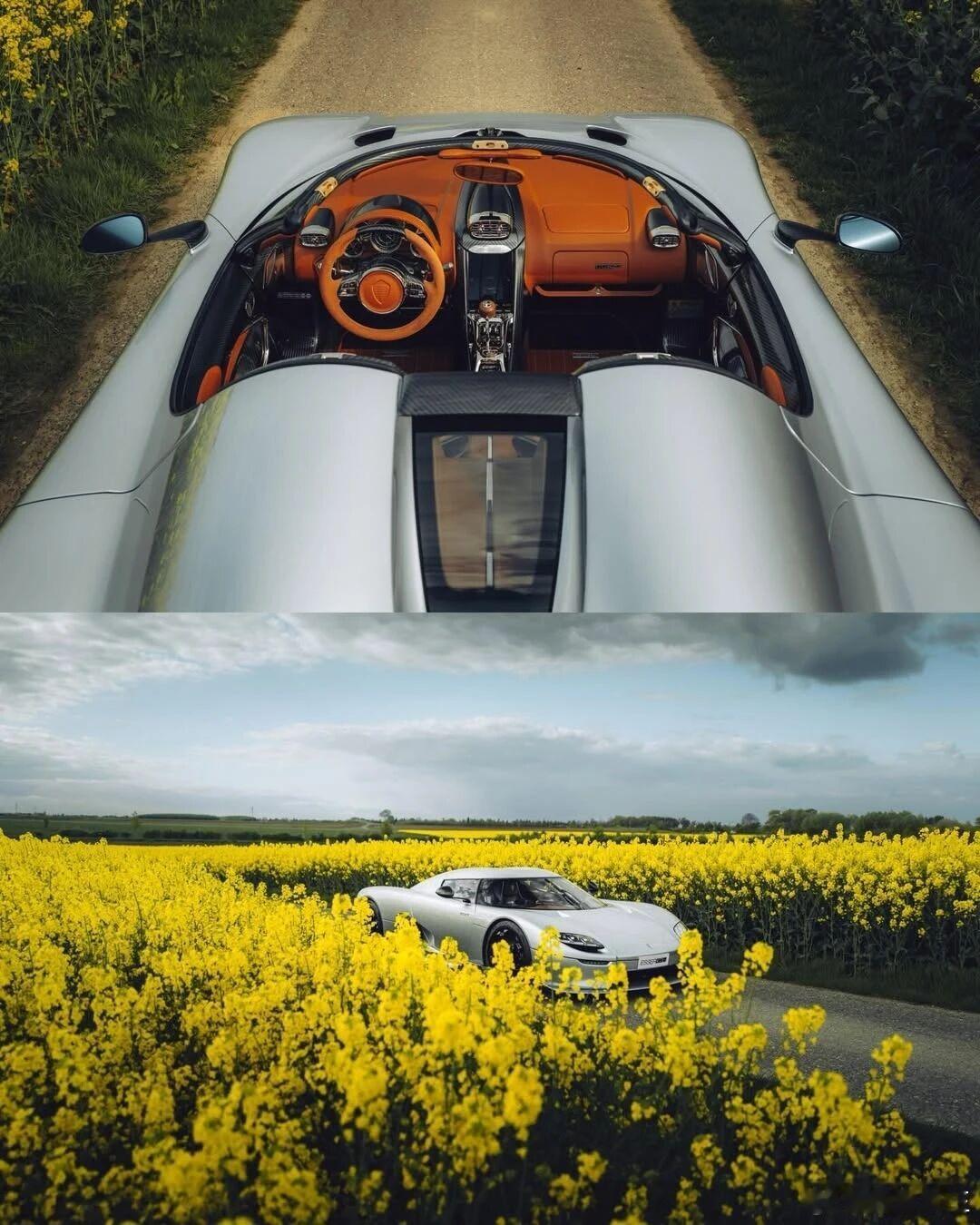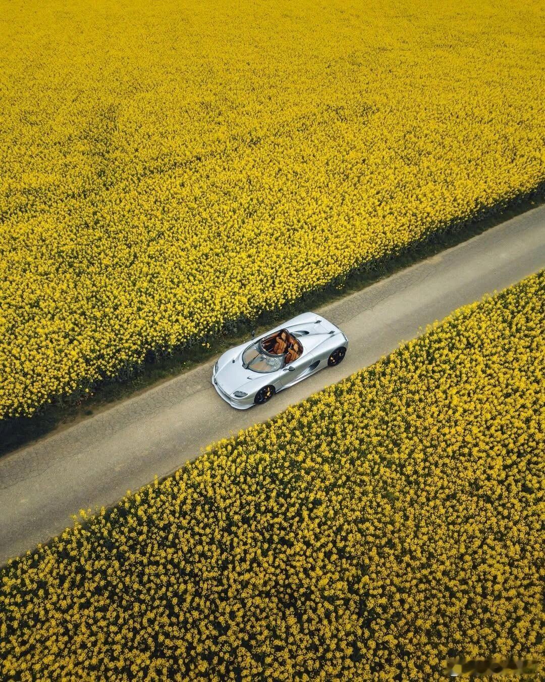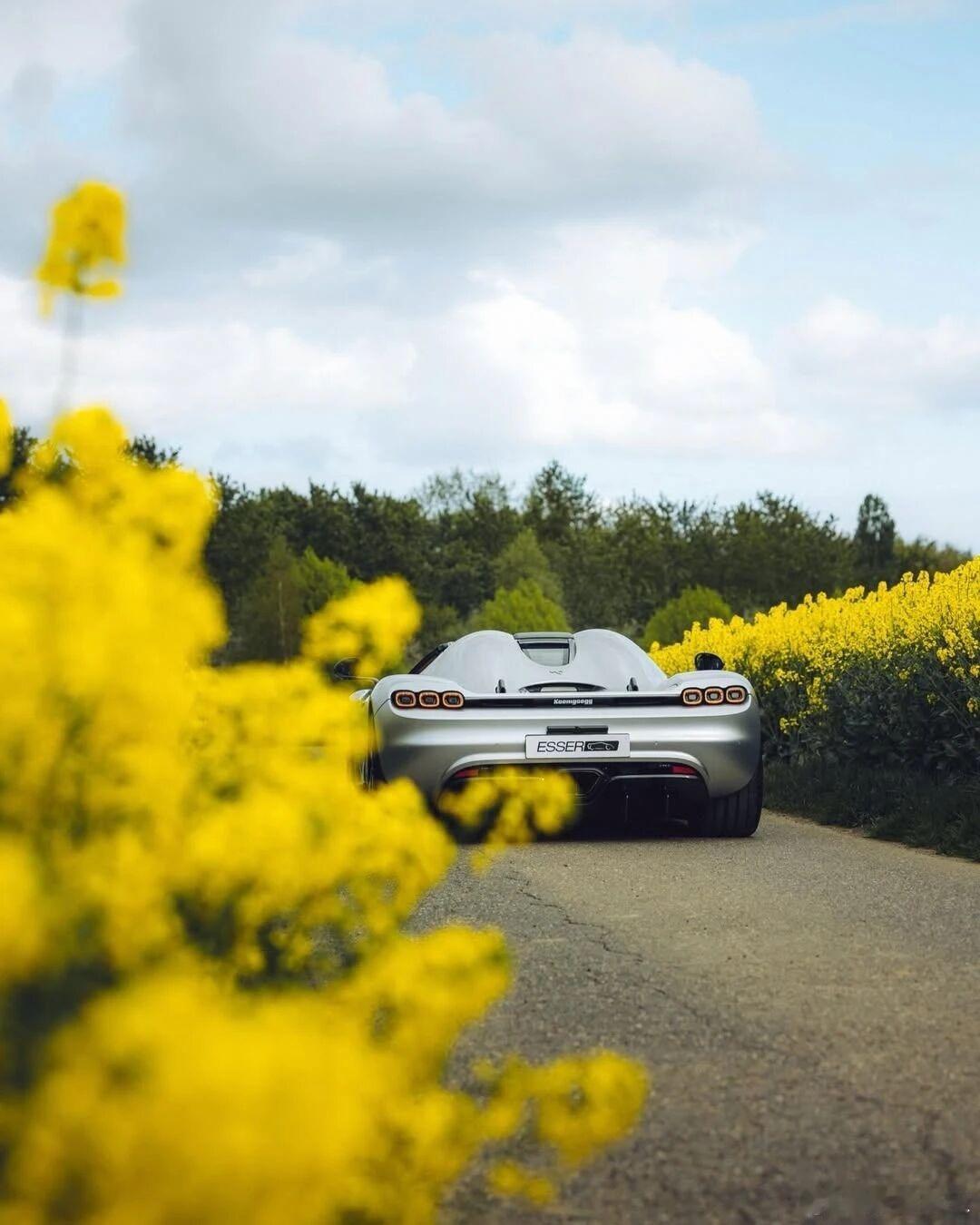 当北欧幽灵驶入春日花海🌼科尼赛克CC850的银白车身,在一片明黄里,像一枚温柔的子弹没有喧嚣,只有风、花,和它独有的机械浪漫机械美学春日超跑大片科尼赛克cc850 北京·四季花海