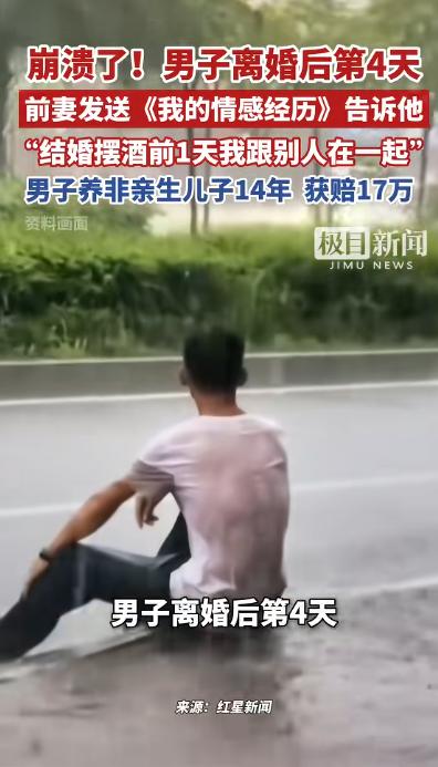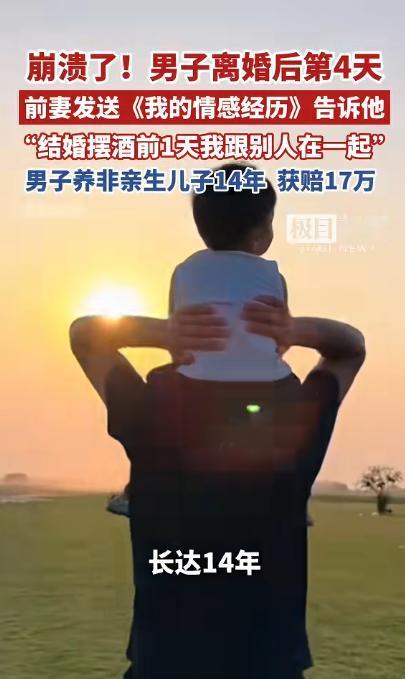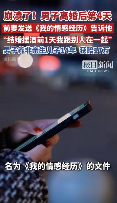 “太狠了!”广西,一男子离婚后第4天,前妻突然发来信息,竟说她在和男子结婚前一夜,与他人发生了关系!男子暴怒之余,怀疑抚养了14年的儿子不是亲生的,经鉴定果然不是,当即将前妻告上法庭索赔47万! 2024年5月24日的深夜,谢海洋(化名)的手机蓦地弹出一条消息,发件人是前妻罗娜(化名),消息标题别具一格,名为《我的情感经历》。 他点开时还没当回事,看了几行,人直接愣住了,里面有一句话特别刺眼,她在摆酒前一天,跟另一个男人在一起,而且很可能就是那时候怀的孩子。 这一句话,把他过去14年的生活一下子推翻了。 时间往前推,2009年,谢海洋通过介绍认识罗娜,觉得合适就结婚了,婚后不久,罗娜怀孕,他当时高兴得不行,满脑子都是当父亲的期待。 2011年,儿子呱呱坠地,自此,他将全部心力倾注于孩子,无论是喂饭时的悉心呵护,接送途中的风雨相伴,还是陪读时光的默默坚守,他一样都未曾懈怠。 为了孩子将来有保障,他还专门买了一份十年期重疾险,每年交将近六千元元,连着交了十年,一次都没断,对他来说,这个孩子就是全部。 但婚姻慢慢出了问题,罗娜对家越来越冷淡,不怎么说话,人也心不在焉,谢海洋后来发现,她一直在跟一个叫黄鑫(化名)的男人联系,聊天内容很暧昧。 他一开始还想挽回,让她断掉,好好过日子,对方也答应过,但实际一直没断,这段婚姻最终还是走到头。 2024年5月20日,二人办理了离婚手续,谁料,就在离婚后的第四天,那份文档不期而至,仿佛是命运在这转折时刻投下的一抹别样注脚。 谢海洋看完后只剩一个念头,孩子到底是不是自己的?他马上带孩子去做亲子鉴定。 结果出来,很直接,没有血缘关系。 也就是说,他养了14年的孩子,不是自己的。 事态陡然生变,谢海洋一纸诉状将罗娜告上法庭,诉求对方返还多年抚养费用,另索精神损失费,总计索赔四十七万元。 法院审理后认定,罗娜在婚姻存续期间与他人存在不正当关系,属于重大过错,对谢海洋造成了伤害,但在具体赔偿上,金额没有完全支持。 精神损失费只判了2万元,抚养费按每月1600元计算,14年一共268800元,孩子的保险费用属于夫妻共同支出,需要返还一半,最终合计下来,罗娜需要支付17.6万多元。 和最初47万的诉求相比,这个结果差了不少。 钱的问题算是有了结果,但更难说清的,是那14年的付出,一个人从孩子出生开始,一点点带大,投入的时间、精力和感情,不可能只用数字去衡量。 对谢海洋来说,他当年认真做的每一件事,照顾、陪伴、规划未来,都是建立在一个前提上,这是自己的孩子,可这个前提,在14年后被证明是错的。 更让人难以接受的,是信息出现的时间点,整段婚姻里,对方从未提过这件事,偏偏在离婚之后才说出来。 从结果而言,法律所能解决的仅是赔偿问题,却难以修复信任破碎后留下的裂痕,那无形的缺失,远非法律之力可以弥补。 这件事带来的冲击,其实不只是一个家庭的纠纷,还涉及一个更敏感的问题,当最基本的信任被推翻时,过去所有的投入该怎么算? 14年的时间,换来一个完全不同的答案,对当事人来说,这不是简单的损失,而是整个生活被重新定义。 信息来源 :极目新闻