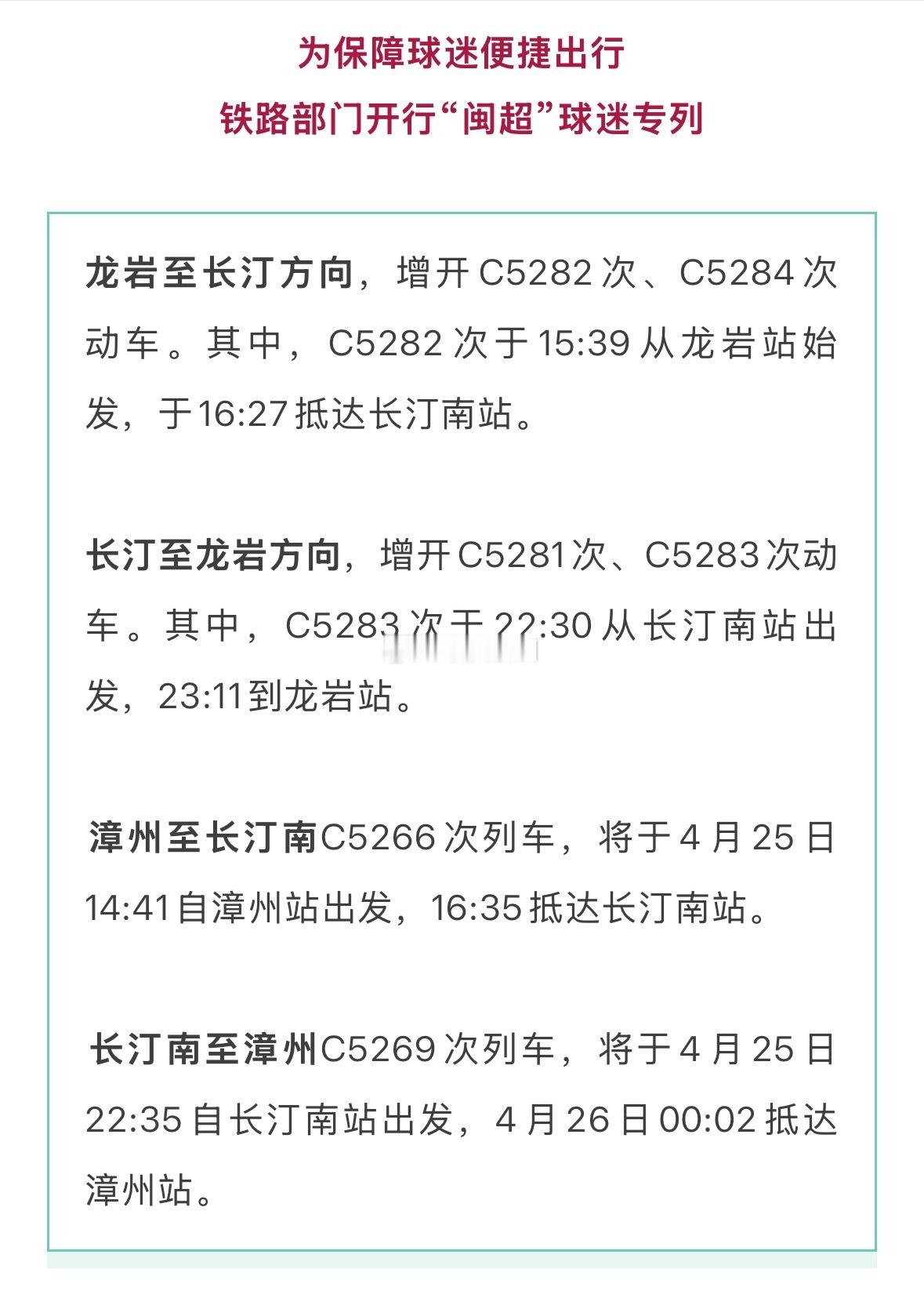 福建今日开通闽超“球迷专列”!
