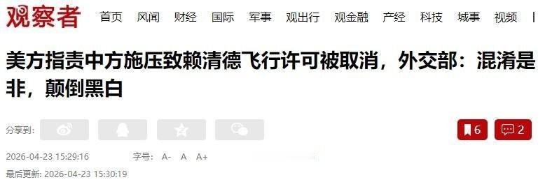 4 月 23 日,外交部例行新闻发布会,彭博社记者提了个问题,说 22 日美国国务院指责中国向三个非洲国家施压,非让人家撤销岛内那位的过境批文。听完这种倒打一耙的甩锅话,真是连笑都觉得多余。 岛内那位向来爱搞事,原本想去非洲仅剩的那个据点,刷一刷虚假的体面。 结果呢?周边几个国家压根不想沾这浑水。人家直接闭门谢客,把空域通道全给掐了。 非洲兄弟凭自身主权定夺自家领空的进出,这事合情合理。可华盛顿立刻急了眼,跳出来替自家棋子叫屈。 在白宫的字典里,大概只要谁没乖乖顺从他们的意思,就一定判定是咱们在背后动了手脚。 咱不妨替当地国家算算这笔长远利益账。 这十来年,岛内所谓的“友邦”早就掉到了个位数。眼看大伙儿正排着队散伙,人家不仅要守着国际共识,更想规避极不划算的外交风险。 谁家踏实过日子,会主动开门让捣乱分子踩自家院子? 奔着自身发展趋利避害,才是这些国家的根本考量。这事压根用不着外人去指手画脚。 这背后的逻辑不难猜。大洋彼岸抛出这类老套说辞,根本不在乎什么飞行自由。 他们真正在遮掩的,是战略抓地力严重退化的焦虑。 当霸权手里的干涉底牌不灵了,当华盛顿发现发展中国家不愿再按西方给的剧本配合演出时,白宫发现自己没招了。 没办法,强行往别人身上甩黑锅,就成了仅剩的下意识动作。 越是急着泼脏水秀存在感,越说明靠长臂管辖一手遮天的日子,彻底到头了。 对此,你怎么看?
