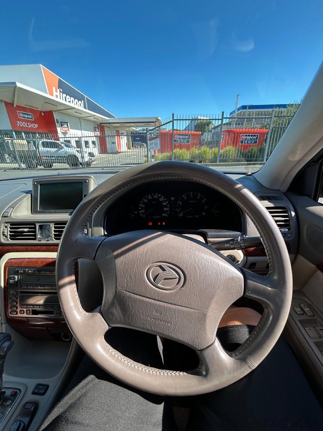 这车算是这一堆车里面弱一点的版本,搭载的是前期的带 VVTi 不带直喷的 1JZ,配 4AT 变速箱。调教算是偏舒适取向的,底盘非常软且厚重,和 JZS155 高度相似;开起来不快但很顺滑,液力变矩器从不锁止。