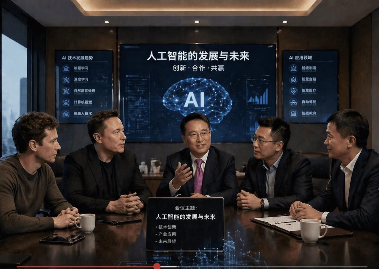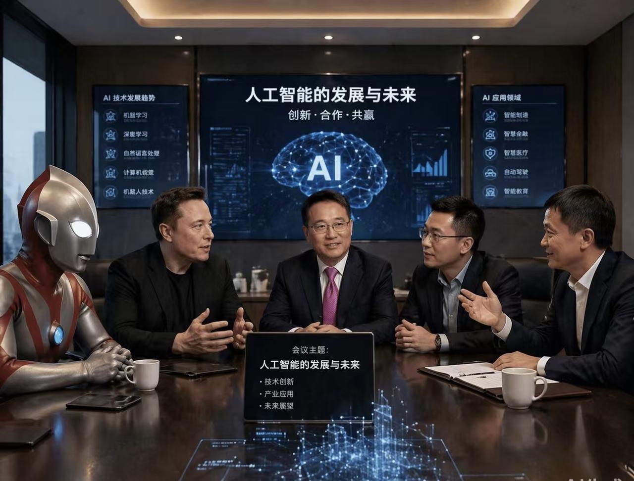 测试Image2 网上很多人都在介绍美国GPT Image 2,我也来试一试。 因为这家公司过去不对中国人开放,所以,过去在中国境内上不去。现在,这个美国人发现自己在丢失中国市场,于是开始设计中国版本,有些地方居然能上去。 我今天就是稀里糊涂地上去,我让他给我生成一个图片。 我的指令是:“把我的相片和马斯克、奥特曼、张一鸣等人放在一起,大家一起开会,研究AI的发展。” 结果第一章的图真的出来一个奥特曼。 于是我强调,把途中的奥特曼换成,美国open AI的创办人奥特曼。于是有了第二张图。 我让图转视频的时候,没有成功。我只好借用马斯克的Grok完成了视频的转变。