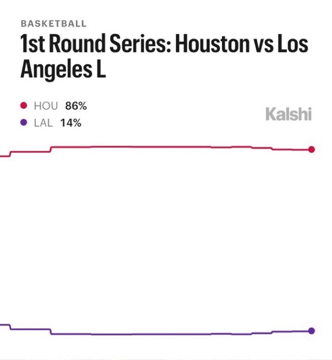 系列赛开始前,预测平台Kalshi给出湖人的晋级概率为14%。湖人3比0火箭