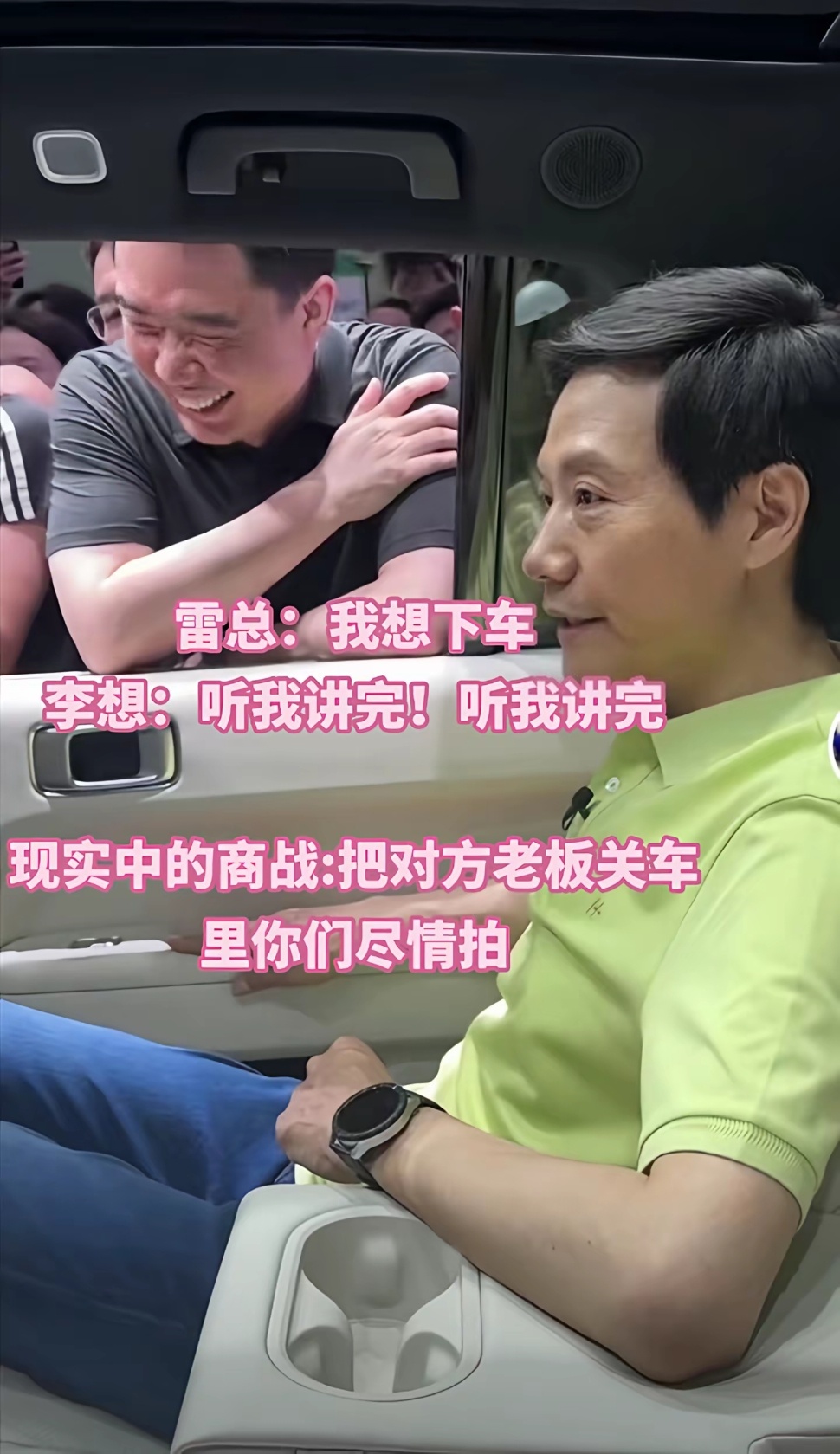 雷军到理想展台看全新理想L9雷总看理想L9,看就看嘛,怎么还带个“听我讲完”T恤衫啊,报仇来了
