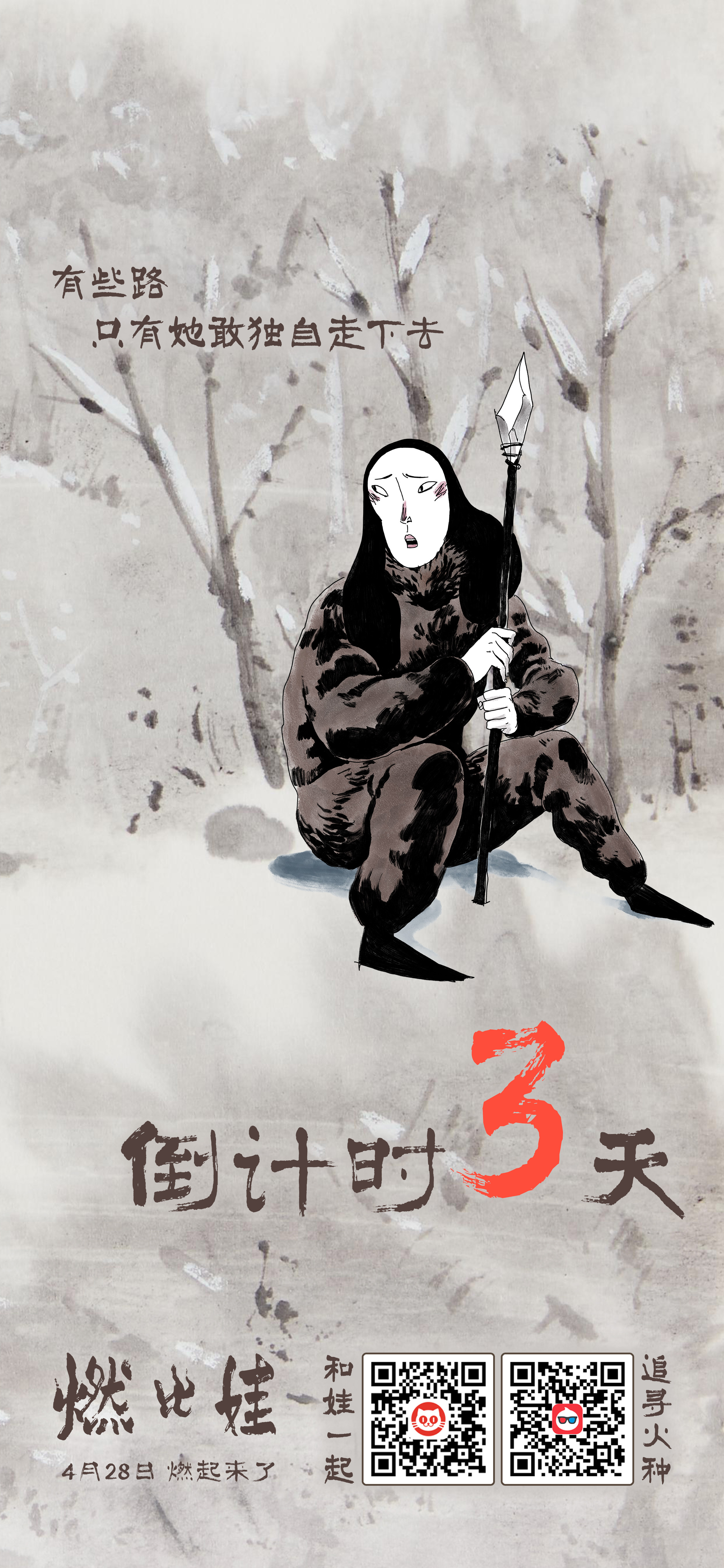 上映倒计时3天!有些路,只有她敢独自走下去。她是阿勿巴吉,也是曾经的人类首领,恐惧和饥饿击不倒她。上海美术电影制片厂首部宣纸手绘动画长片电影燃比娃 4月28日,燃起来了!
