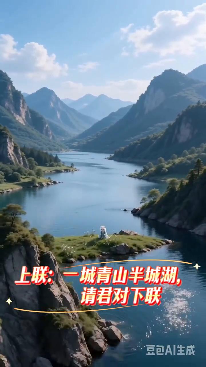 上联:一城青山半城湖,请君对下联。 豆包AI生成。