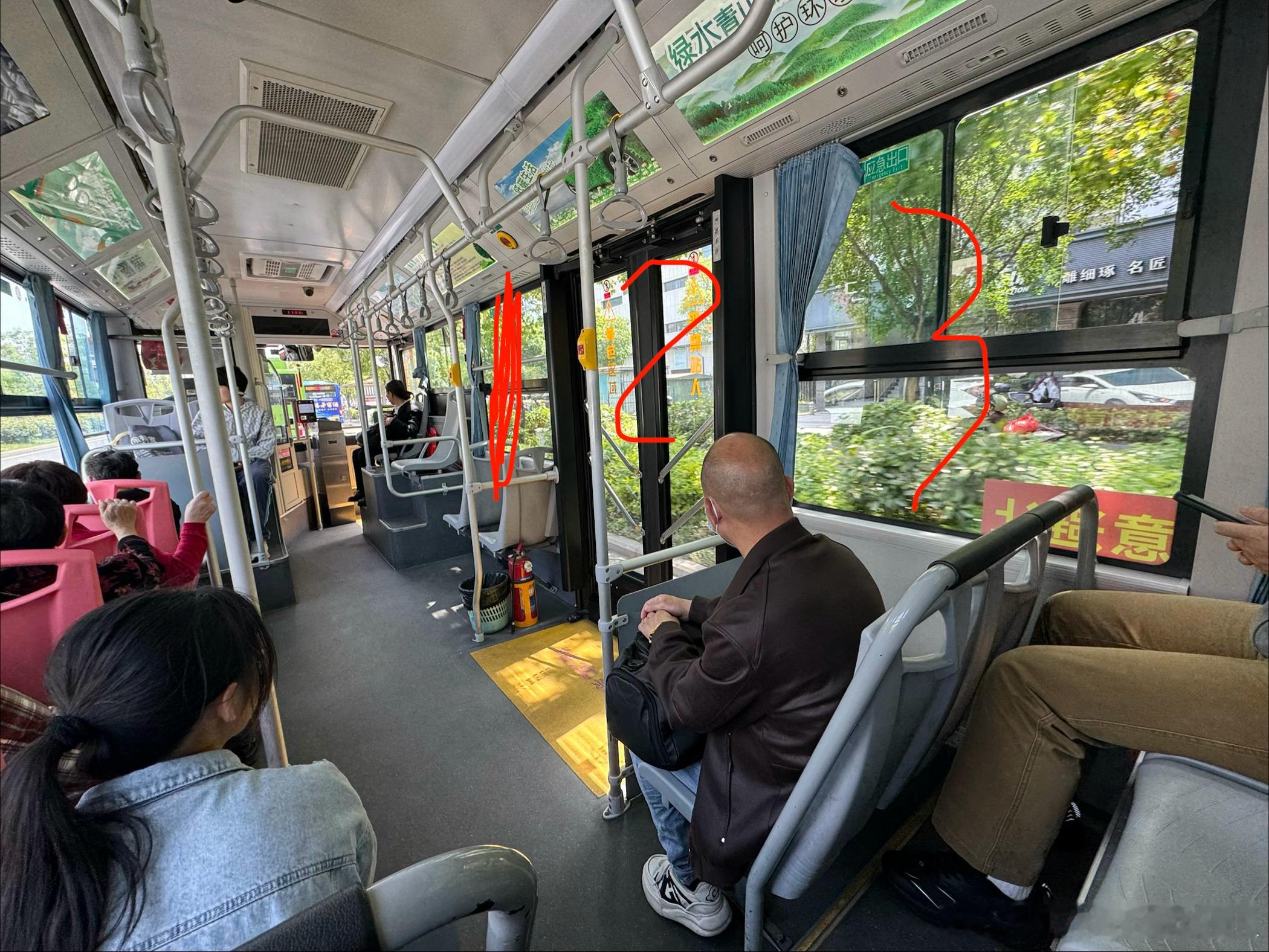 8m柯基类型纯电公交车后门有三个位置可以放(图中后门位置以及相邻车窗位置),仔细想了想现在这个位置是最合适的