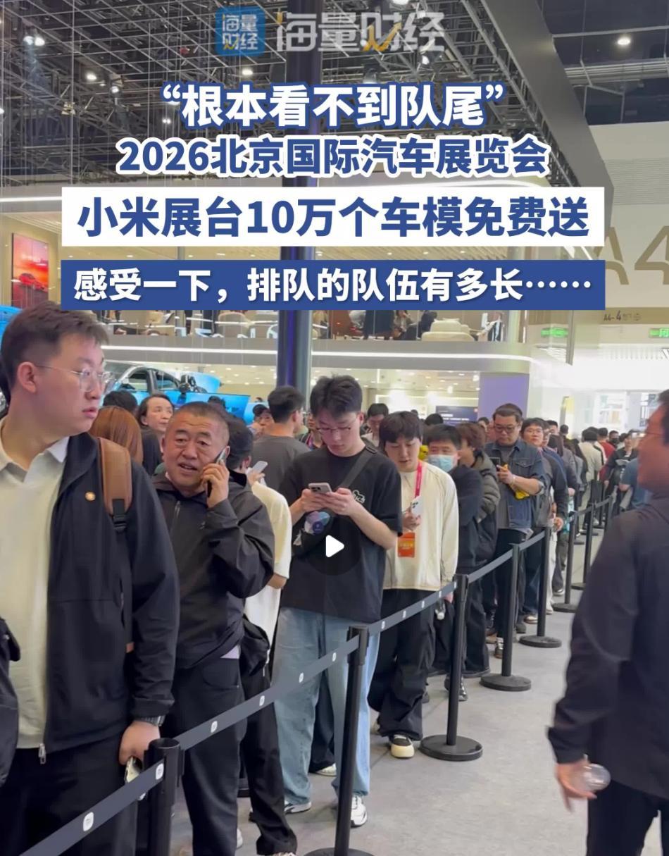 北京车展惊现“排队狂潮”!小米豪送10万车模,队伍从馆内排到馆外🔥 2026北京车展小米展台彻底“杀疯”了!为吸引观众,小米直接放出大招——免费送10万个1:64合金车模!结果现场直接“失控”:排队队伍从馆内蜿蜒到馆外,一眼望不到头!记者直呼:“根本看不到队尾!”这场景简直比双十一抢购还疯狂,妥妥成为车展顶流!💥 为啥这么火?小米这波操作太会了👇 ✅ 精准拿捏“薅羊毛”心理:免费+高颜值车模,谁不心动?直接引爆观众参与欲,排再久也要冲! ✅ 社交裂变玩到飞起:领到车模的人纷纷晒单炫耀,朋友圈、微博瞬间刷屏,小米不花广告费就喜提全网曝光。 ✅ 流量拉满,品牌赢麻:排队长龙秒变“活广告”,路过的观众全被吸引。雷总亲临现场更是火上浇油,话题直接爆! ⚠️ 但疯狂背后也有隐忧: ● 有人为领车模苦排几小时,体验感两极分化:“为个车模值不值?”的争议在所难免。 ● 万人聚集的安全问题更考验组织能力,万一出岔子,可能“翻车”。 ✅ 深度思考:送车模虽香,但小米真正的底气还是技术!展台同步亮相的SU7/YU7车型、人车家生态等硬核实力才是关键。这波操作看似“撒钱玩梗”,实则暗藏心机:先用福利拉流量,再让技术留人心,流量与实力两手抓!📈 网友热评: “为了车模排了3小时,但看完小米SU7,突然觉得值了!” “小米这波是营销鬼才,既送福利又秀肌肉,双赢啊!” 信息来源:海报新闻 | 2026-04-24 话题:小米车展送10万车模 北京车展顶流 雷军排面 薅羊毛现场