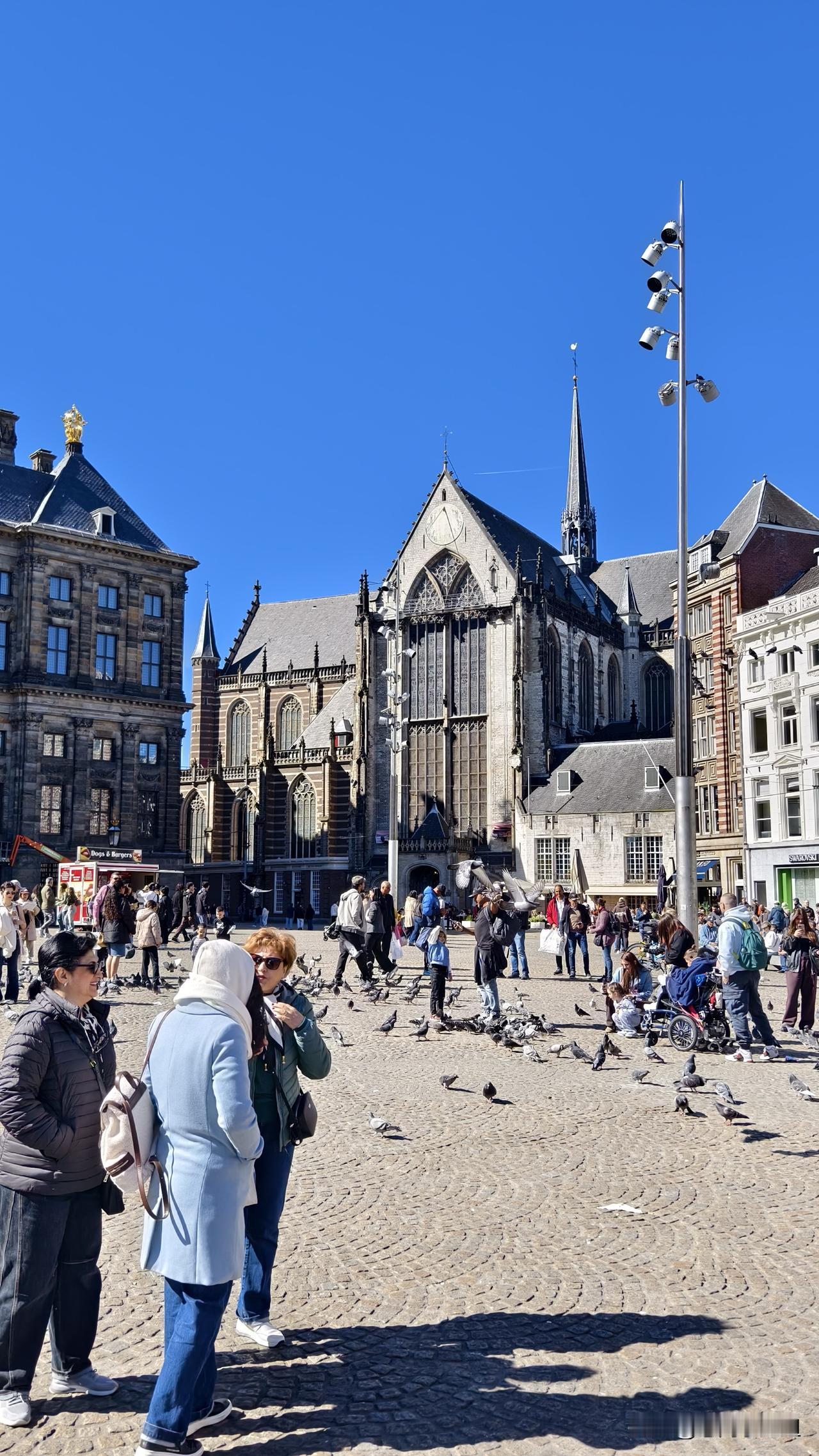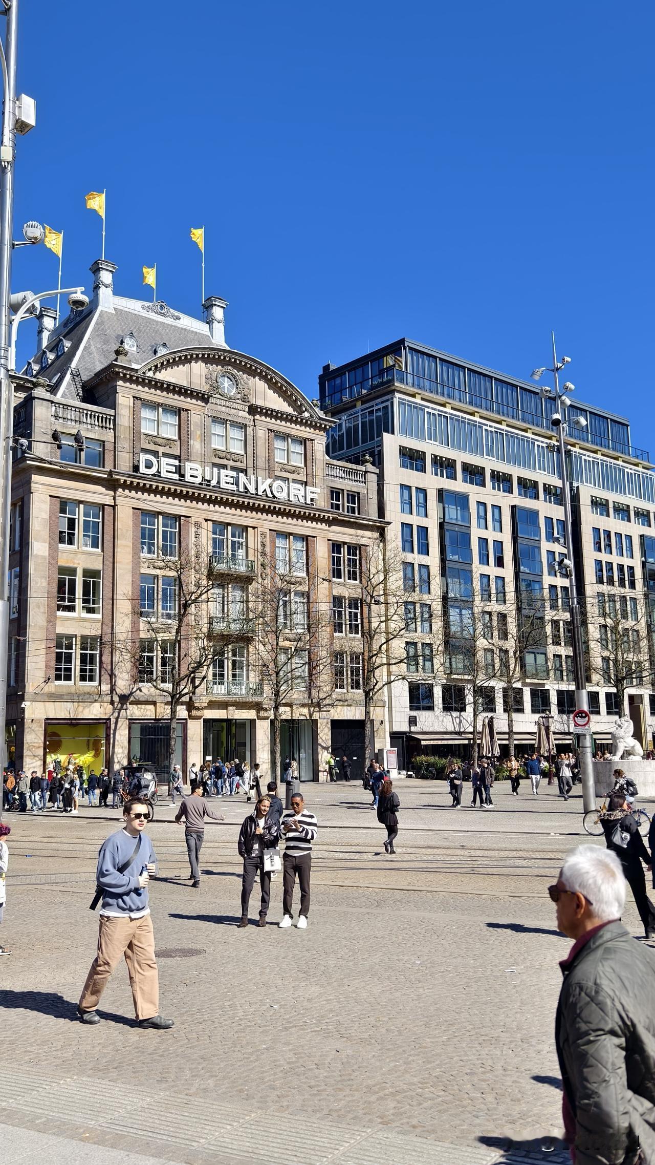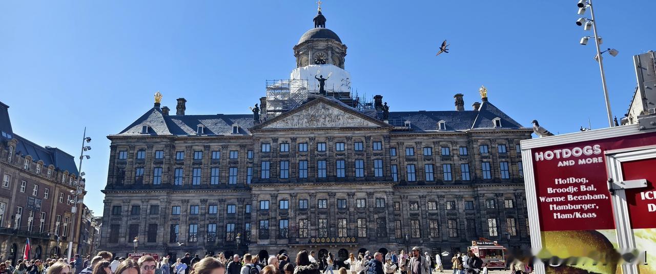 我的维京之旅(四) 水坝广场位于是中心,是阿姆斯特丹这座城市的起源地。 小红人带我们从在火车站南门出来,告诉我们前方不远处就是水坝广场,这一带是阿姆斯特丹最繁华的地方。然后让我们自己去逛,并约定了集合的时间、地点。 我们从火车站一路向南,因为天气好,街上的人非常多。路边的店铺外面都坐着人,有的在吃饭,有的在喝咖啡。欧洲人是不会错过这样的暖阳的。 这条路不长,走路也就十来分钟,可是我们走了好长时间。因为这里有许多商店、饭店,都是古老的建筑,需要拍照打卡。 13世纪渔民为阻挡海水倒灌、控制水位在阿姆斯特尔河与艾河交汇处,筑起一道土坝。后来水坝顶部逐渐拓宽,成了天然市集与活动场地,慢慢演变成市中心广场。也由此有了阿姆斯特丹这座城市。 从火车站去往水坝广场这条路叫达姆拉克大街,这条路把水坝广场分成东西两侧。 水坝广场西侧那个新古典主义建筑是荷兰王宫。旁边的哥特式建筑是新教堂,现用于展览与音乐会。 国家纪念碑矗立在广场东侧,纪念碑是白色方尖碑,高22米,建于1956年,纪念在二战牺牲的人。每年5月4日都会在这里举行二战死难者默哀仪式。 女王百货是水坝广场地标,高端百货商店。紧邻国家纪念碑,华人俗称女王店。 从火车站向水坝广场方向走,远远看到一个红砖建筑,高耸着钟塔。这里是贝尔拉格交易所。它是世界金融的发源地。 我觉得水坝广场特别要说的应该是贝尔拉格交易所。 1602年世界第一家证券交易所成立,也就是这个阿姆斯特丹证券交易所,交易荷兰东印度公司。 新红砖交易所是1903年竣工,原来交易所在女王百货。 现在这座楼内部保留交易大厅原貌,常办艺术展与活动。 十七世纪是荷兰的黄金时代,辉煌集从“低地小国”一跃成为全球海上霸主、金融与贸易中心、文化艺术高地,史称“海上马车夫” 。 世界上第一个交易所起源于荷兰一点都不奇怪。 我们没有太多时间游览这些景点内部,为了集合不迟到,就匆匆赶回去了。