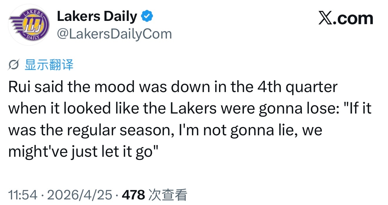 八村谈到第四节当湖人看上去要输的时候球队情绪低落时说道:“说实话,如果这是常规赛,我们可能就直接放弃了。”湖人3比0火箭