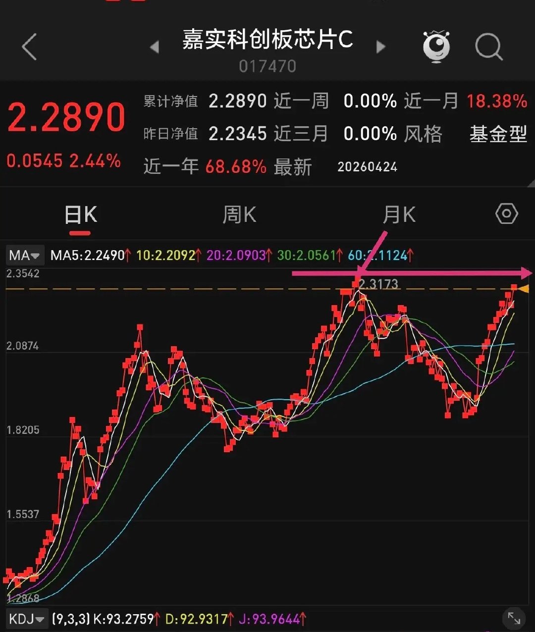 半导体板块表现最强的是存储芯片,其次就是科创芯片,再就是半导体材料设备。下图是科创芯片日线周线走势,日线马上就要到了前期高点,估计下周初有可能突破高点,构成短线顶部。周线走势目前还在上升通道中,接近通道上线,再涨涨就要到了压力线。科创芯片比较强势,做短线可以分期止盈部分,然后等回调再买回来,大趋势是涨的。假如你没有丰厚利润垫底,几天回调就把利润吃掉了。