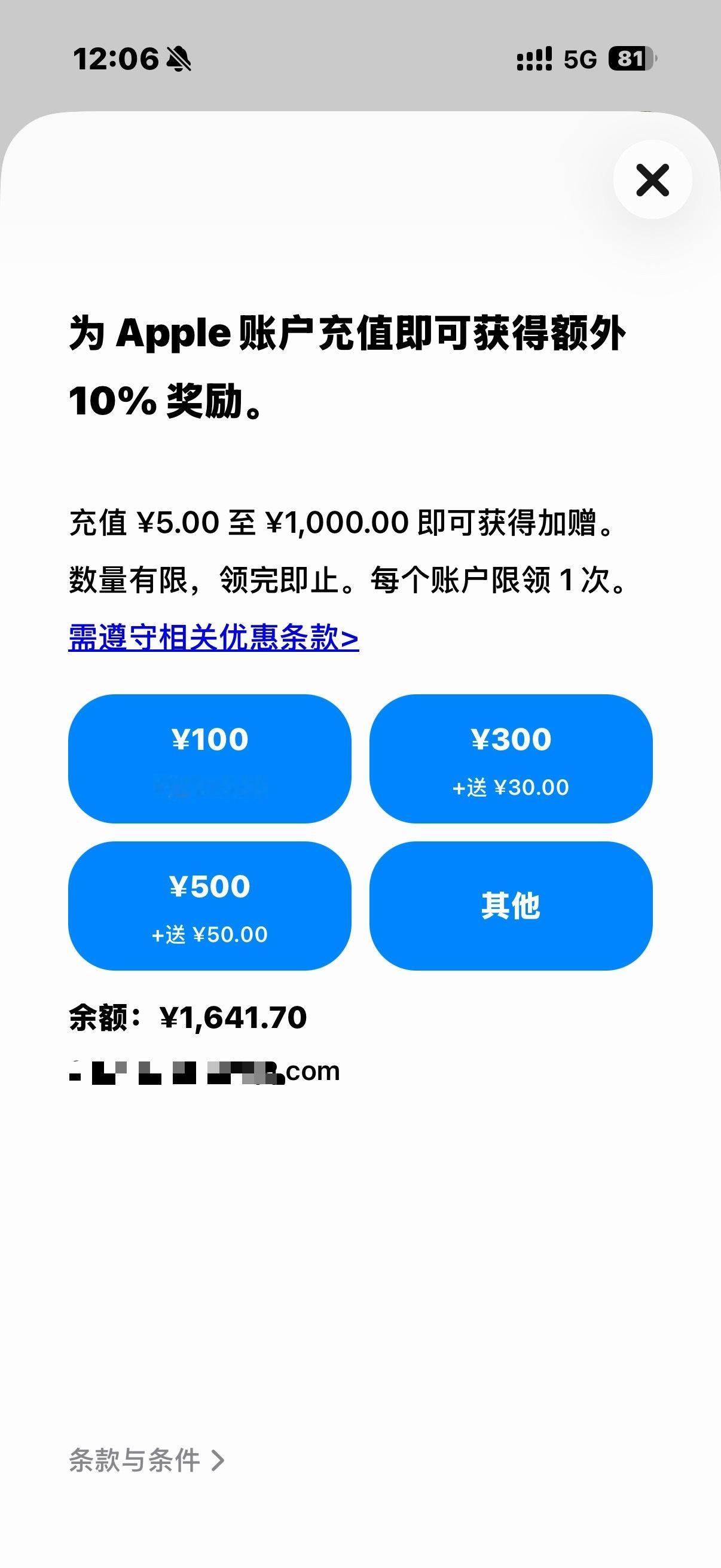 App Store充值又有优惠了,这次上的很突然, 5-1000块钱充值金额大概是九一折,我又囤了一波,自从土耳其iCloud没有优惠以后直接回国了,给有需要的朋友可以看看
