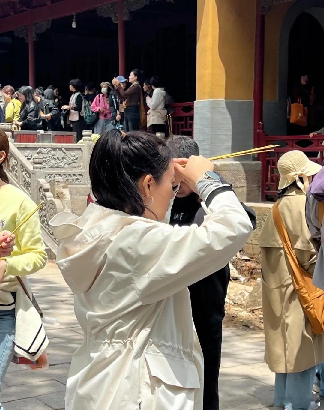 小李琳和老公经超现身普陀山上香祈福,夫妻俩穿着简单的日常服饰,身高差好萌;小李琳看起来胖了好多,脸蛋圆润。