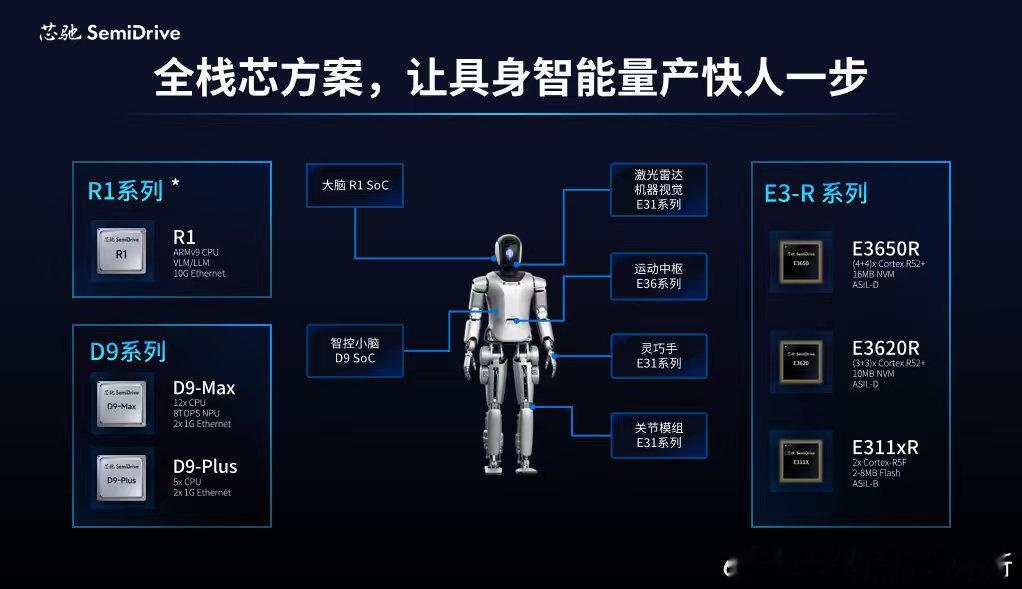 芯驰这次发布了覆盖"大脑-小脑-躯干-关节"的全栈方案,与银河通用机器人合作。车规芯片天然具备高可靠性、实时响应和长期供货保障,这些恰好是机器人产业的痛点。