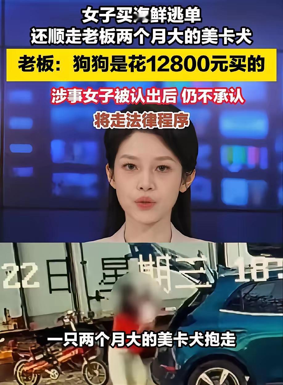 活不起?秦皇岛女子买海鲜逃单,还顺走价值12800元纯种幼犬,拒不认错太离谱 贪小便宜能到什么地步?河北秦皇岛昌黎县发生的这一幕,简直让人大跌眼镜!一名女子在海鲜店消费后,不仅一分钱没付直接逃单,还顺手偷走店主放在后备箱的名贵宠物犬,事后被找到还拒不承认,态度嚣张至极。 4月22日,在昌黎县鹏湖小区附近的海鲜店,店主万先生像往常一样忙碌经营。当天店内生意火爆,来往顾客络绎不绝,万先生特意把自己刚入手不久的爱犬带到店里,这是一只仅两个月大的美卡犬,品相出众、血统纯正,是他花了12800元精心购入的伴侣犬,平日里呵护备至,视若珍宝。 因为天气闷热,担心小狗在封闭车厢里闷坏,万先生特意将汽车后备箱打开一条缝隙通风,反复确认小狗不会自行跑出后,便转身回店专心招呼顾客,完全没料到,自己的一时疏忽,会引来一场闹剧。 事发时,一名女子进店挑选海鲜,全程行为十分反常。她看似慢悠悠挑选食材,实则眼神飘忽,不停四处张望,暗中留意万先生的动向,全程心怀鬼胎。挑好海鲜后,女子丝毫没有付款的意思,反而以“再看看”为借口,慢慢挪到店门口。 趁万先生转身为其他顾客称重打包、无暇顾及周边的间隙,女子瞬间加快脚步,径直跑到汽车旁,一把抱起后备箱里的幼犬,随后拎起自己选好的海鲜,快步上车、发动车辆,整套动作行云流水、毫无慌乱,全程不过几分钟,显然是早有预谋,光天化日之下上演了偷狗+逃单的戏码,径直扬长而去。 等到万先生忙完手头工作,想起后备箱的小狗前去查看,才发现幼犬不见踪影,刚才挑海鲜的女子也早已没了踪迹,连海鲜货款都分文未付,顿时又急又气。他立刻调取店内监控,清晰看到女子全程作案过程,气得浑身发抖。 要知道,普通美卡幼犬市场价仅2000-6000元,万先生这只凭借纯正血统和绝佳品相,价值远超同类,是他花重金买来的心肝宝贝。事发后,万先生第一时间报警求助,警方迅速介入,通过监控锁定涉事女子身份,还通过快递站工作人员联系上对方。 可让人万万没想到的是,面对确凿证据,女子非但没有丝毫愧疚,反而矢口否认偷狗、逃单的违法行为,后续警方多次致电联系,她更是直接拒接电话,刻意躲避追责,丝毫没有归还小狗、补缴货款的意思。 万先生气愤表示,即便后续小狗被找回,自己也绝不私了、不接受任何赔偿,一定会坚持走法律程序,依法追究女子的法律责任,绝不纵容这种恶劣的违法行为。 目前,经警方全力追查,被盗的美卡犬已于23日晚成功找回,小狗身体状况良好,但女子的违法行为依旧要受到法律制裁。 事件曝光后,迅速引发网友热议,大家纷纷怒斥女子行为离谱:买海鲜逃单已是贪小便宜,还顺手偷走万元名犬,被揭穿后拒不认错,毫无底线;也有网友表示,这种公然盗窃、恶意逃单的行为,已经触犯法律,理应受到严惩,绝不能姑息。 一只无辜的幼犬、一笔小额的海鲜货款,照出了个别人为了私利毫无底线的真面目。贪图一时小利,触碰法律红线,最终只会自食恶果。 对此,大家怎么看?你觉得该女子理应受到怎样的处罚? 秦皇岛女子偷万元幼犬逃单