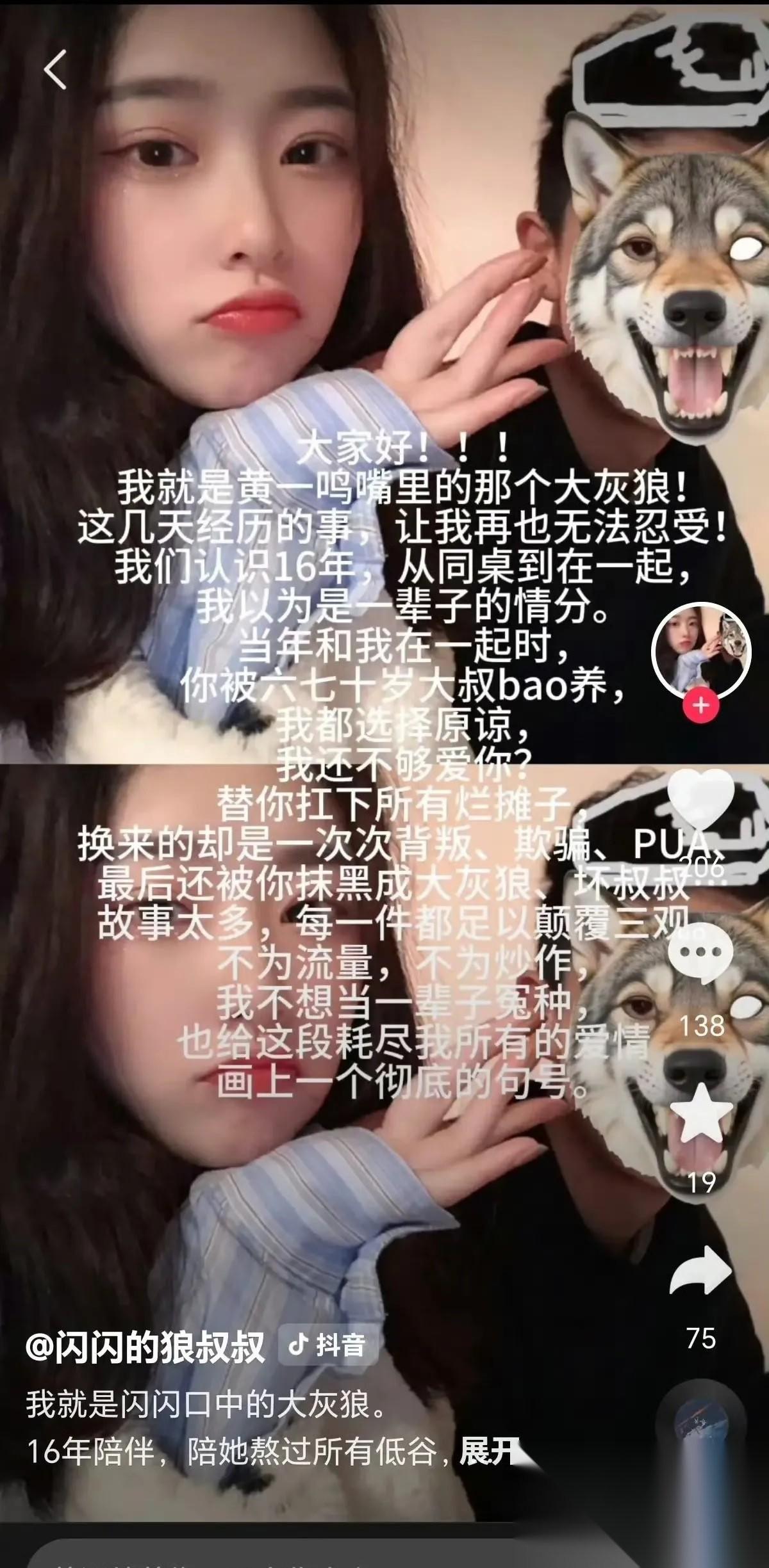 黄一鸣前男友跳出来爆料她恋爱期间出轨,还被六七十岁大叔包养,怪不得王思聪不认闪闪,还真不一定是他女儿。黄一鸣真的把一手牌打得极其稀烂。 回看这场全网围观的闹剧,无非是一场捞金未遂、反噬自身的幻梦。 这背后的行事逻辑,根本经不起推敲。 镜头前哭得梨花带雨扮可怜,转头就把陪自己度过青春岁月的旧相识死死踩在脚下。靠毁掉别人的名声,给自己立了个“独立坚强”的牌坊。 那头儿呢,又攥着个小婴儿当底牌,妄图去赌一把泼天富贵。 拿着满是漏洞的剧本,去硬闯人家布下的天罗地网。 不露馅才怪。 想借着吃瓜的热度去强行拿捏权贵,这招从一开始就是死棋。 那位顶流公子哥混迹名利场这么些年,什么路数没见过? 顶级富豪能稳坐阶层壁垒,靠的可不光是手里的钞票。 他们背后是毫无死角的法务防线,和冷酷到骨子里的利弊算计。 你想拿舆论施压? 火一旦烧起来,聚光灯立马掉头。大家会拿着高倍显微镜,把你以前那些乱七八糟的情感旧账扒个底儿掉。 网友或许容易被一时的眼泪蒙蔽心软,但绝对忍不了被蓄意当枪使。 拿新生生命当筹码,去讨要天价抚养费。 这不仅击穿了为人父母的底线,更是太高估了自己的段位。 总有涉世未深的年轻女孩做着美梦,觉得只要肚子争气,就能绕过普通人一辈子的拼搏,一步跨进金字塔尖。 可现实里的资本家从来都不是活菩萨。 人家谈一段感情关系,跟做并购案没两样,满眼全是在做风险评估。 靠算计别人、硬拗虚假人设去抄捷径。 这种不知收敛的贪心,迟早会把人拽进无底坑。 折腾到最后,只能沦为互联网的一地鸡毛。 对此,你怎么看?