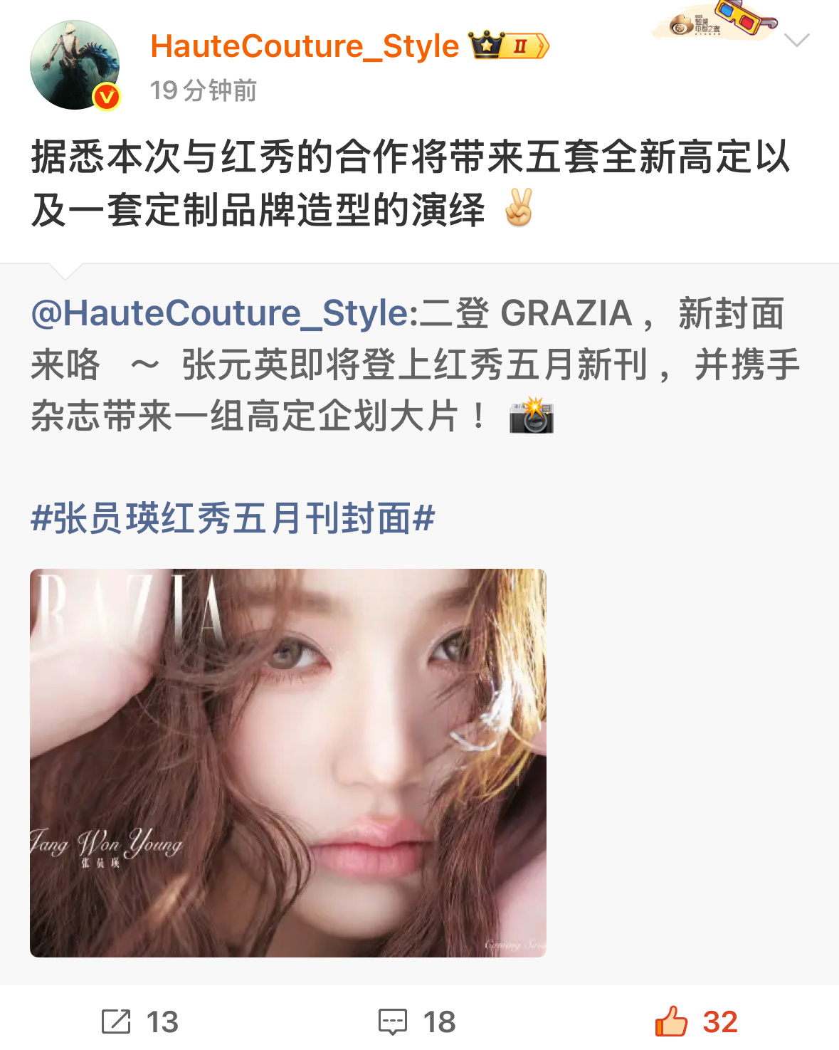 如果你也好奇乱纪最近到底有多爽 站台22+新闻社来出图 ig两条 采访不到一天最火的推文已经19w👍1.6w🧱 二登红秀杂志封面五套高定