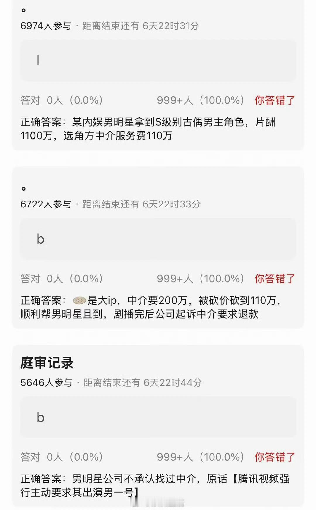 吃到🍉某男明星拿到S级古偶男主片酬1100万,选角中介服务费110万。剧集播出后起诉中介要求退款。🍉主还在评论区说剧扑了。大家觉得这是内娱会发生的事情吗? 刷到后续🍉,进的戏是我就是这般女子,男主容瑕是侯明昊演的…… 又又又刷到了后续澄清,好像是说与侯明昊本人无关,疑似是前公司作妖?