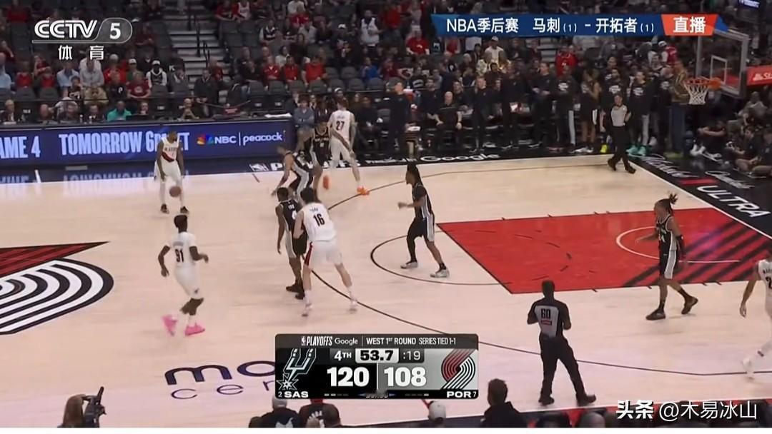 NBA季后赛马刺客场120-108战胜开拓者。 北京时间4月25日中午,NBA季后赛开拓者(1)主场迎战马刺(1)(第三场)比赛。下半场第3节开局开拓者70-59,卡斯尔3分霍勒迪3分73-64,克林根罚球霍勒迪上篮76-64,阿夫迪亚罚球哈泊罚球霍勒迪3分再罚球卡斯尔上篮72-84,卡特布兰特3分阿夫迪亚罚球85-78,约瀚逊3分阿夫迪亚上篮83-85,哈泊罚球福克斯3分88-87,结束第3节马刺领先1分。第4节开局马刺93-91,夏普上篮霍勒迪上篮95-93,哈珀3分再扣篮日卡斯尔中投103-95,卡斯尔罚球克林根罚球马刺底角3分108-96,阿夫迪亚罚球97-108, 科内特扣篮阿夫迪亚快攻101-112,霍乐迪上篮福克斯罚球114-103,福克斯上篮卡斯尔罚球120-108,全场比赛结束,这样圣安东尼奥马刺队客场以120-108战胜了波特兰开拓者队,大分2-1反超开拓者。开拓者球星 开拓者阵容