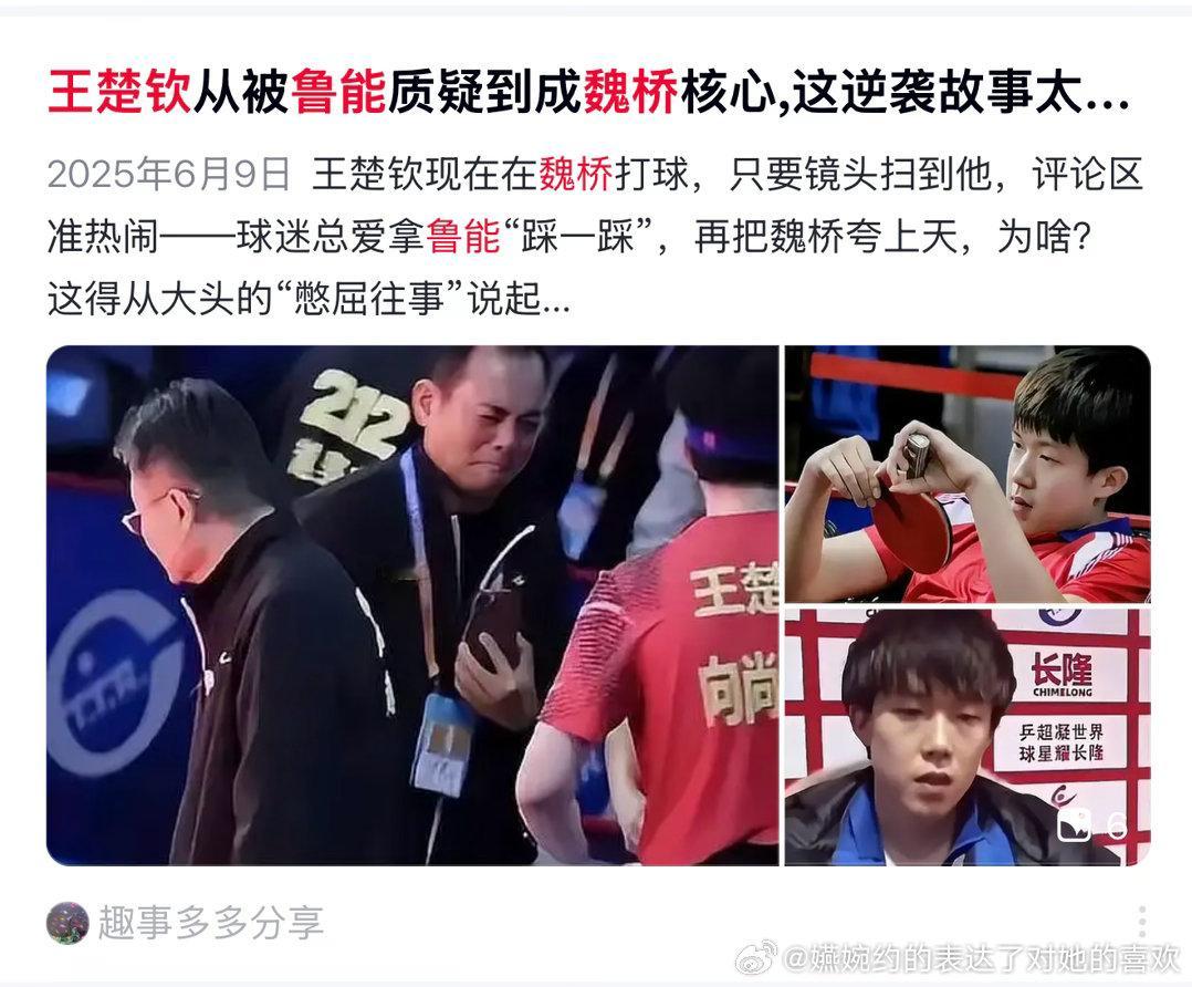 想起来了,全都想起来了,被周启豪打了19:0后,被鲁能扔到魏桥去了,然后第一年王楚钦在鲁能,魏桥拿的冠军,第二年王楚钦在魏桥,鲁能拿的冠军
