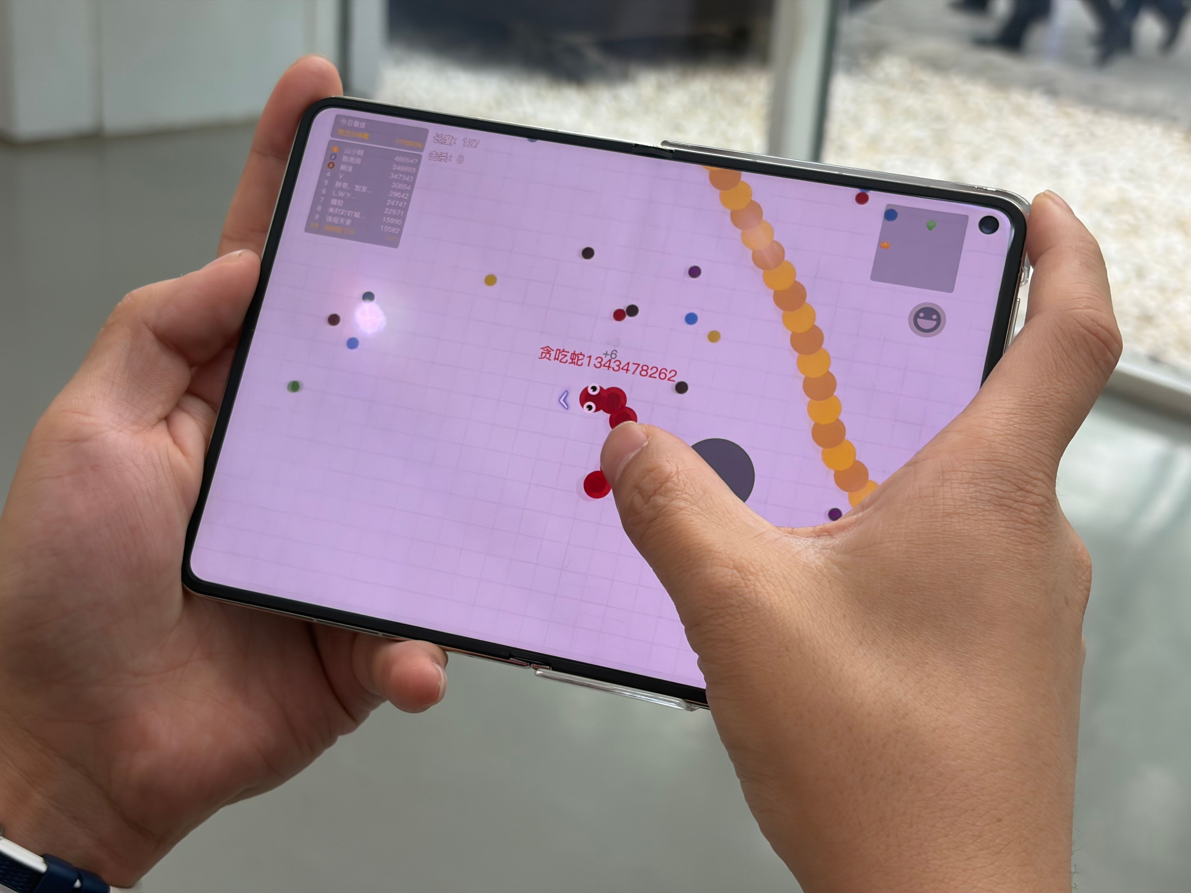 大阔折尺寸和手感直接拉满,展开就是7.7英寸超大屏,比很多直板机都大,跟个小平板一样,看剧打游戏巨爽。玩游戏视野特别开阔,敌人在哪一眼就能看到,预判、走位都更稳,上分都轻松多了。