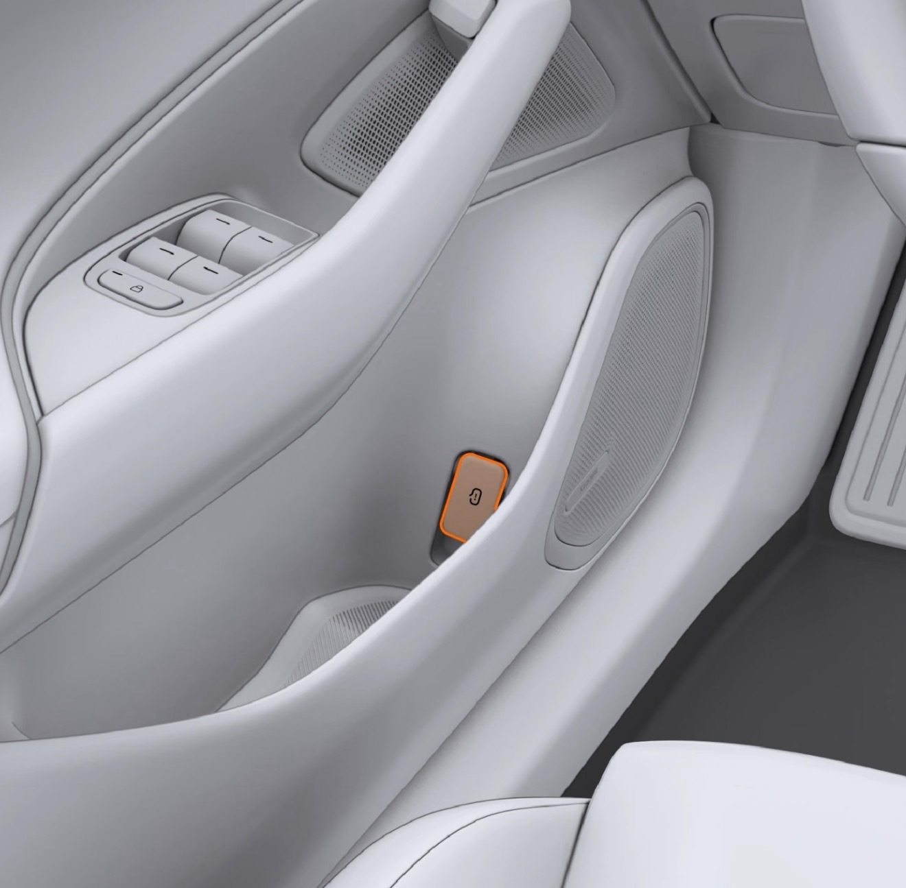 之前能源车大量车内开门方式,都使用了电子按钮(图1),而应急机械拉手往往设计在门板下方的位置(图2)