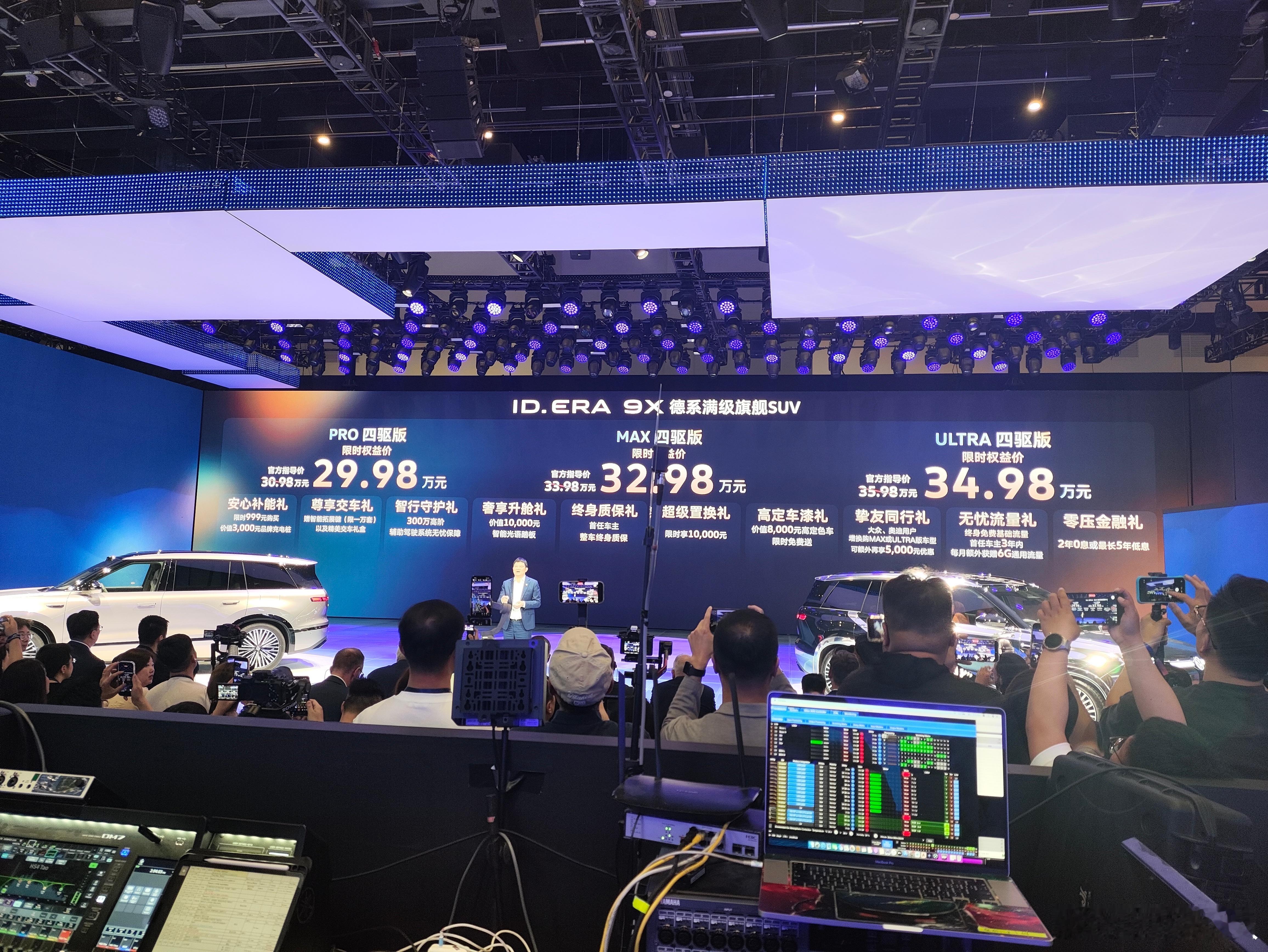 进30以内了!上汽大众ID.ERA 9X正式上市!权益价29.98-34.98万元,全系四驱增程式,这车首发了Momenta R7的世界模型高阶智驾,大众的德系机械素质和操控,EA211当増程器,入门版是347km的续航,中高配都是406km,感觉没拉开差距,综合续航都超1600km了,低配和高配就差了个双腔空簧和电池大小,其他都是这舒适性配置,这价格大家会选低配还是高配?! 北京车展北京车展新车新能源汽车