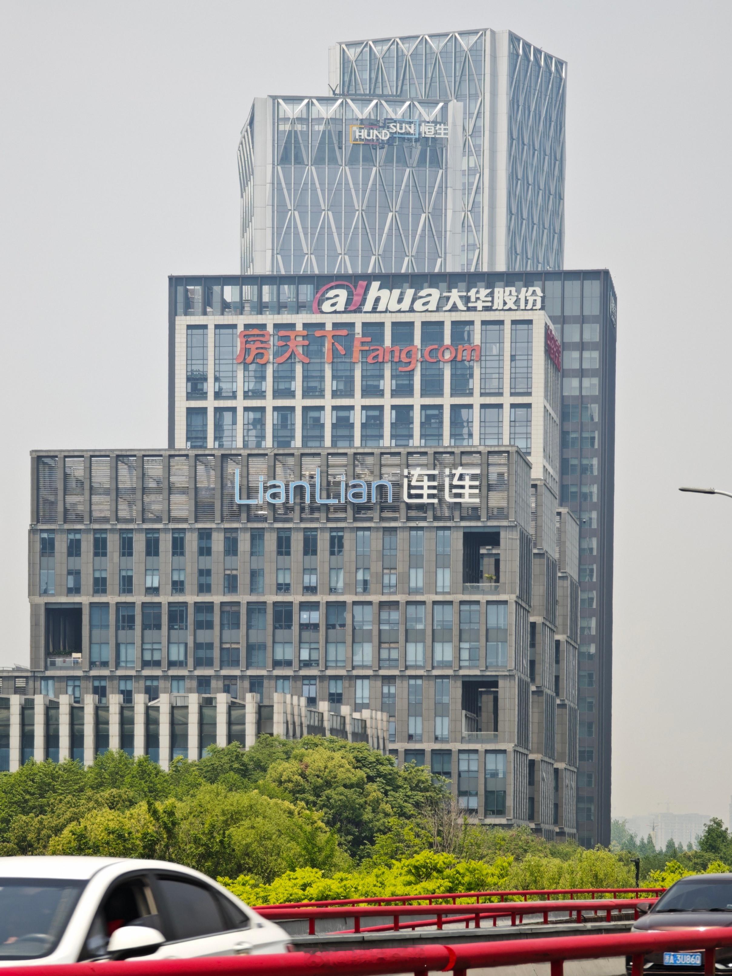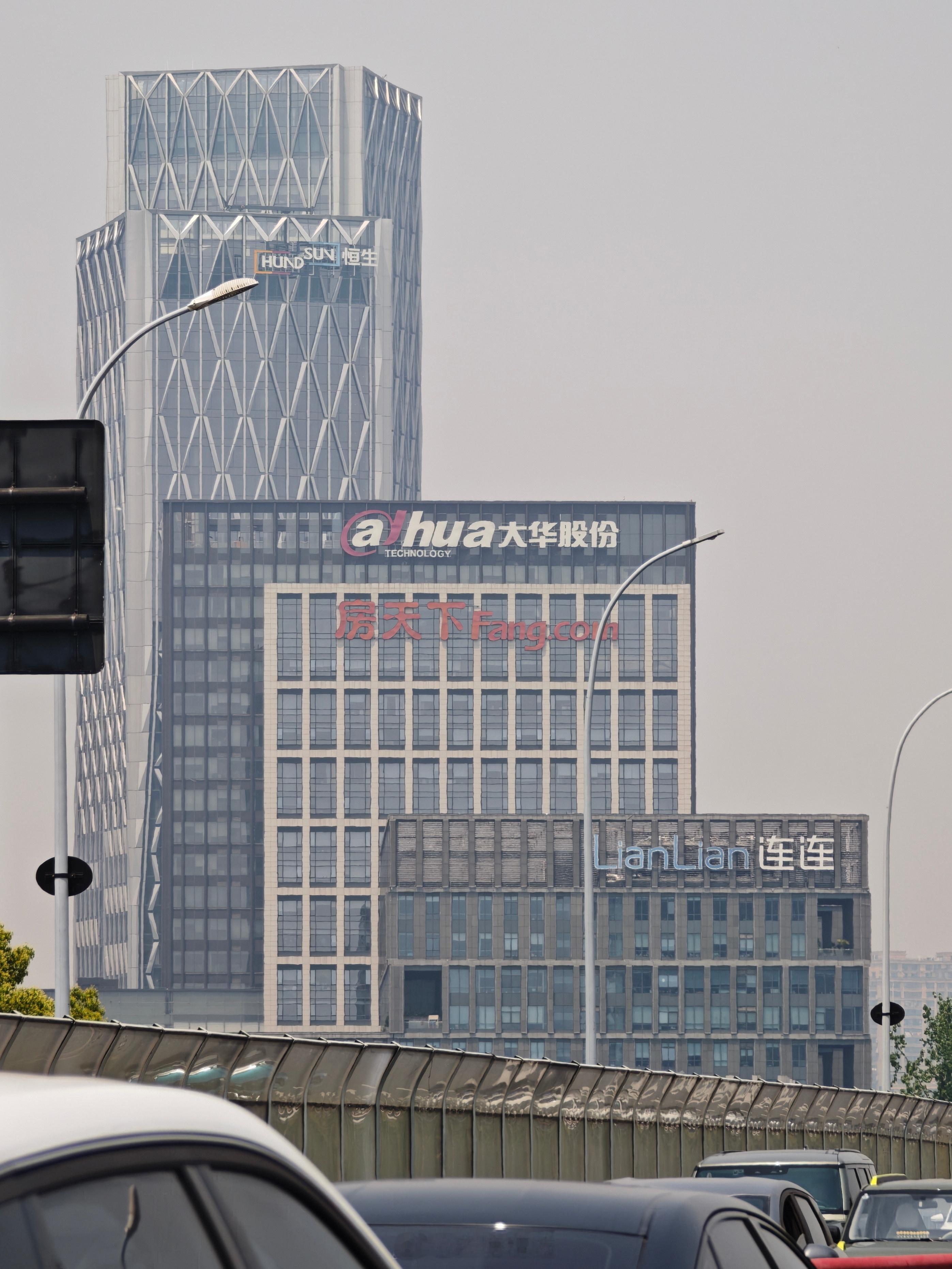 东侧是阿里巴巴、网易等大公司,西侧更有意思——建筑高度呈梯度变化,恰好为每家企业留出了LOGO展示空间。