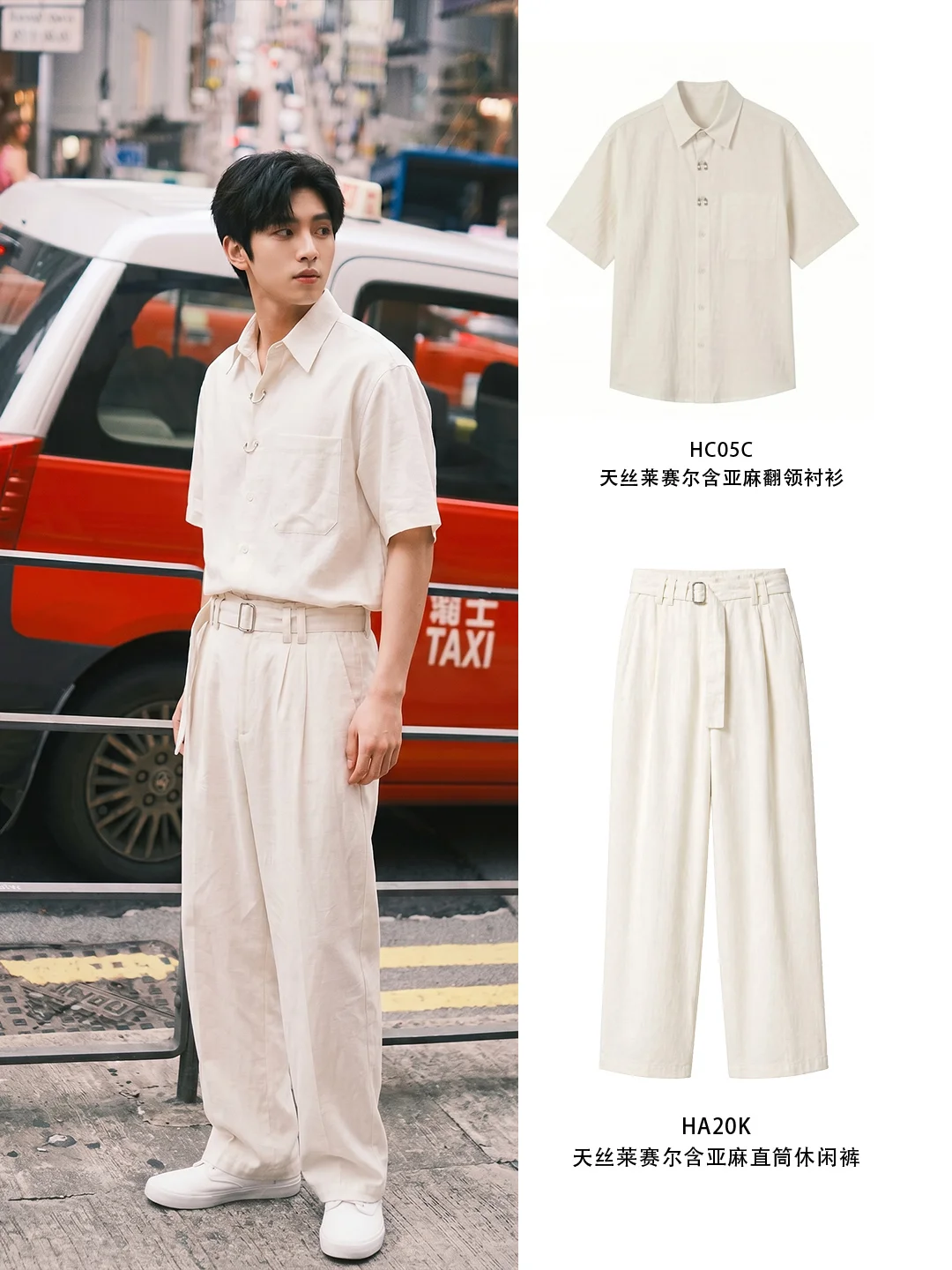 很多兄弟一到夏天就陷入“短袖T恤+大裤衩”的平庸循环,其实想穿出那钱风松弛感,选对面料比什么都重要。这套面料里加入了亚麻的筋骨感,但因为有天丝莱赛尔的调和,贴身穿完全不扎人,甚至带着丝丝凉感。125支的高支工艺,让布料在阳光下有一种淡淡的珍珠光泽。