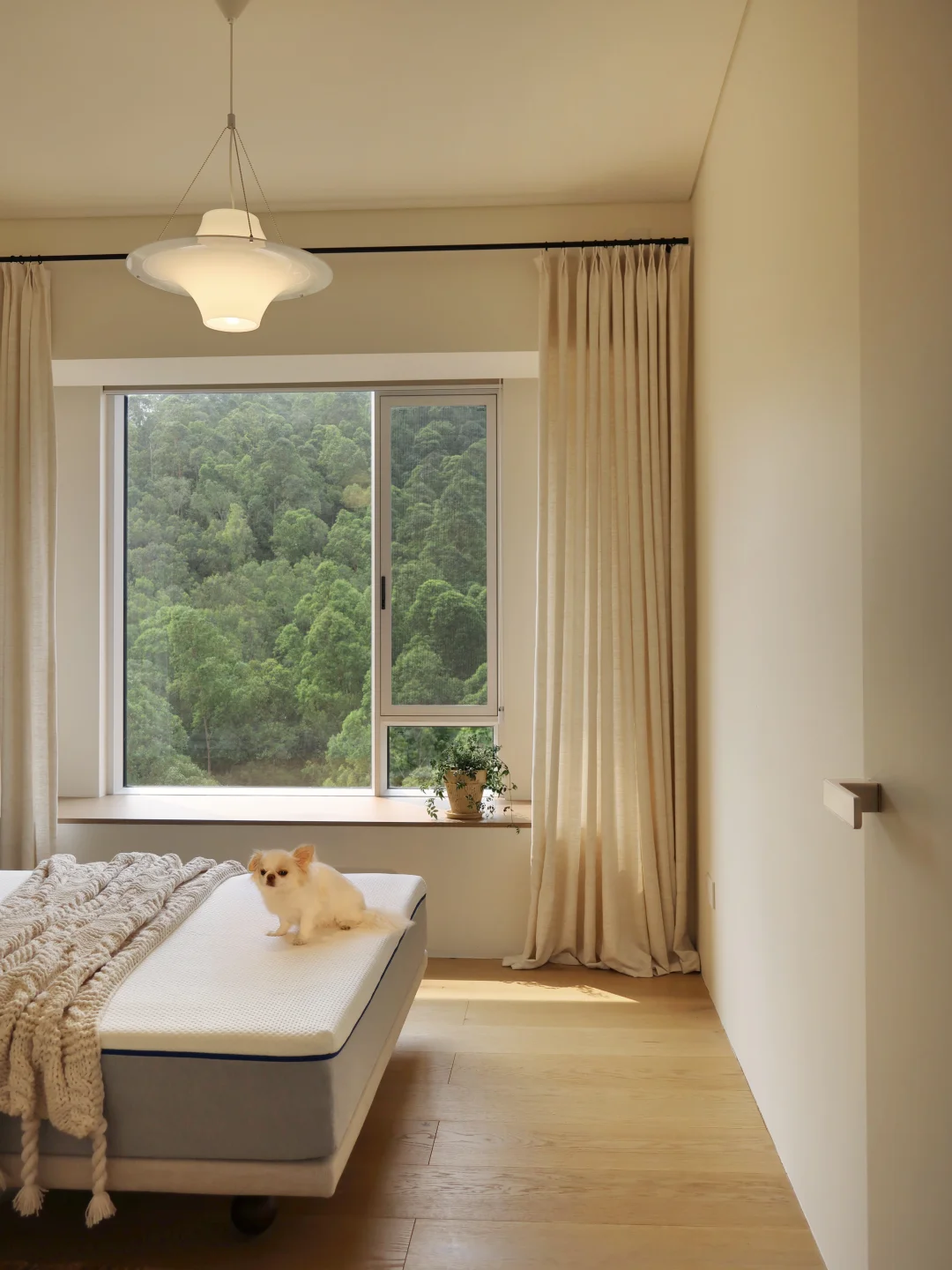亚麻布艺床搭配这张意睡眠M1床垫,是整个房间的温柔担当☁️