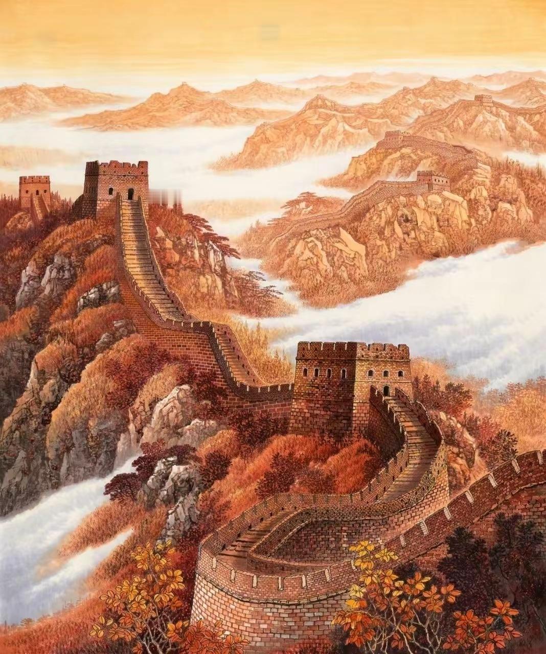 长城映金辉。感受国画的意境之美 创作者中心 创作灵感 带你走进画里 国画长城定制