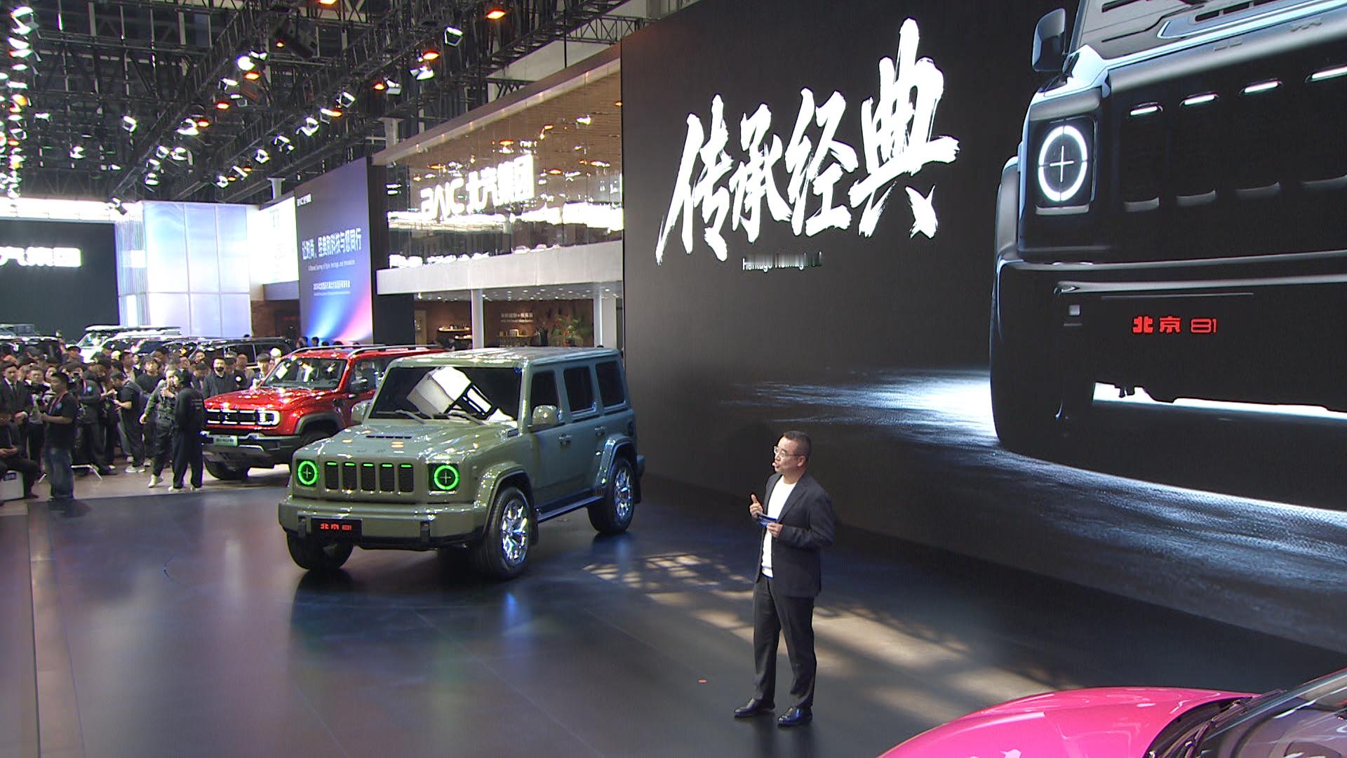 2026北京车展 在北京车展看到北京 81 实车,正统方盒子造型比图片更震撼,线条笔直硬朗,2050mm 宽体 + 305mm 宽胎,非承载车身 + 独立悬架,标配前中后三把锁,越野性能也很强!大灯是狙击枪瞄具设计,酷到骨子里;子弹按钮、栓式怀挡、战术小书包,每处细节都藏着军迷狂喜的战术元素。