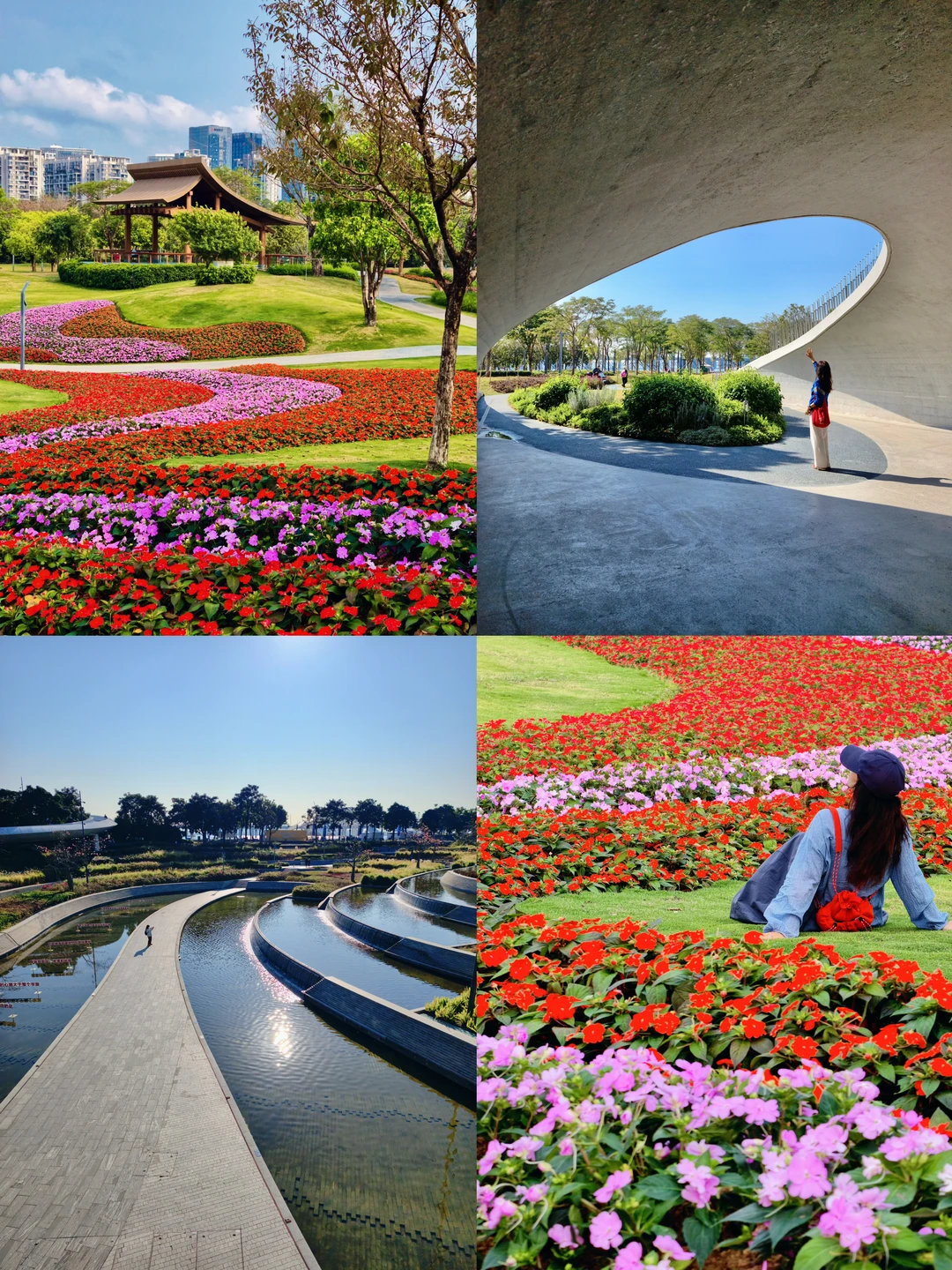 ✅主打“城市天际线+海景+摩天轮”的现代都市感,沿途打卡花海,躺草坪上看海超治愈