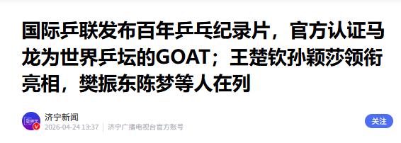 [熊猫]尘埃落定!4月23日,国际乒联在其成立百年庆典上正式宣布马龙成为乒坛历史上的 GOAT! 这个消息传来,没有太多的惊愕,更多的是一种“终于等到你”的释然。 其实国际乒联对马龙的这份推崇早已不是秘密,早在2024年,当马龙在澳门重夺世界杯冠军时,官方报道的标题就直接打出了“The G.O.A.T is back”。 进入2025年,国际乒联更是连续发文,称他为“史上最伟大球员”,并盛赞他“永远改变了这项运动的打法、理解和崇敬”。 所以这次百年庆典上的正式认证,更像是一场精心准备的加冕典礼,为这位传奇的职业生涯,画上一个金色的、无可辩驳的句号。 国际乒联给出的评定标准极为苛刻,几乎涵盖了一名运动员所能触及的所有维度:奥运会、世锦赛、世界杯、巡回赛以及世界第一的累计时长。 而在这些硬指标上,马龙的数据堪称“断层式领先”。 掰着指头数数看,那份成绩单实在太过耀眼:6枚沉甸甸的奥运金牌,让他不仅成为奥运乒乓球历史上的金牌第一人,也超越了所有前辈,成为获得奥运金牌最多的中国运动员。 其中,2016年里约和2020年东京两枚奥运男单金牌,铸就了男子乒坛至今无人能及的“双圈大满贯”神话。 如果说奥运会的成就定义了他的高度,那么世锦赛的三连冠(2015、2017、2019)则彰显了他巅峰时期的绝对统治力。 再加上世界杯的冠军头衔,他的世界冠军总数达到了惊人的31个。 更可怕的是他长久的统治力,累计64个月雄踞世界第一宝座,这个纪录至今仍让后辈们望尘莫及。 技术层面,他那被誉为技术巅峰的正手弧圈球,以及无懈可击的“六边形战士”形象,早已成为乒乓球教科书里的黄金标准。 然而,数据终究是冰冷的,真正让马龙的“GOAT”地位深入人心的,是他对这项运动近乎偏执的追求和热爱。 就在不久前的2025年,已经手握无数荣誉的他,还为了职业生涯荣誉版图上的最后一块拼图而战。 在粤港澳全运会上,他率领北京队时隔32年重夺男团冠军,那一刻,他终于集齐了所有能参加的赛事(奥运会、世锦赛、世界杯、亚运会、亚锦赛、亚洲杯、巡回赛总决赛、全运会、全锦赛)的所有冠军,完成了真正意义上的“全满贯”。 这份坚持,这份对完美的追求,早已超越了胜负本身。 他的影响力也早已不局限于赛场之内,2024至2025年度,他荣获了由国家和地区奥委会协会(ANOC)颁发的“杰出运动生涯奖”,成为首位获此殊荣的亚洲运动员,这标志着他的成就得到了整个国际奥委会体系的最高认可,地位超越了单一的乒乓球项目范畴。 如今,进入2026年,马龙虽然逐渐淡出了国际赛场的第一线,但他并未离开。 在成都的训练基地里,人们能看到他作为“导师”,悉心指导王楚钦、林诗栋等新生代备战伦敦世乒赛的身影。 他正在完成从一个时代的“统治者”到这项运动“守护者”的角色转变,他留下的不仅仅是那些几乎不可能被复制的纪录,更是一种精神遗产,一种对乒乓球运动的极致理解和无私传承。 所以,当国际乒联在百年华诞这个历史性节点,将“史上最佳”的桂冠郑重地戴在马龙头上时,全世界的球迷都会心一笑。 因为所有人都知道,这个答案,早已写在了过去二十年的每一场惊心动魄的比赛里,写在了他挥洒的每一滴汗水里,也写在了无数球迷的心中。 这并非一个时代的结束,而是一个传奇被正式镌刻进历史的开始。