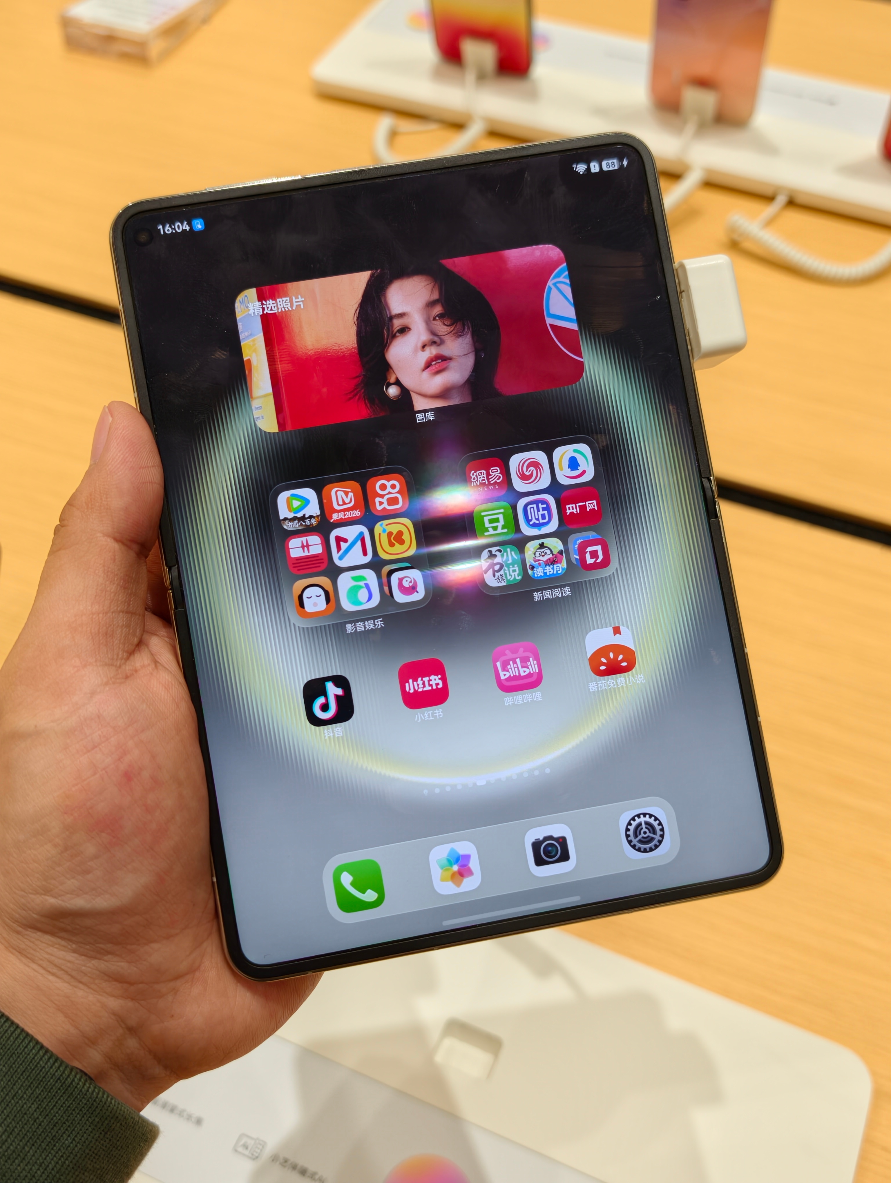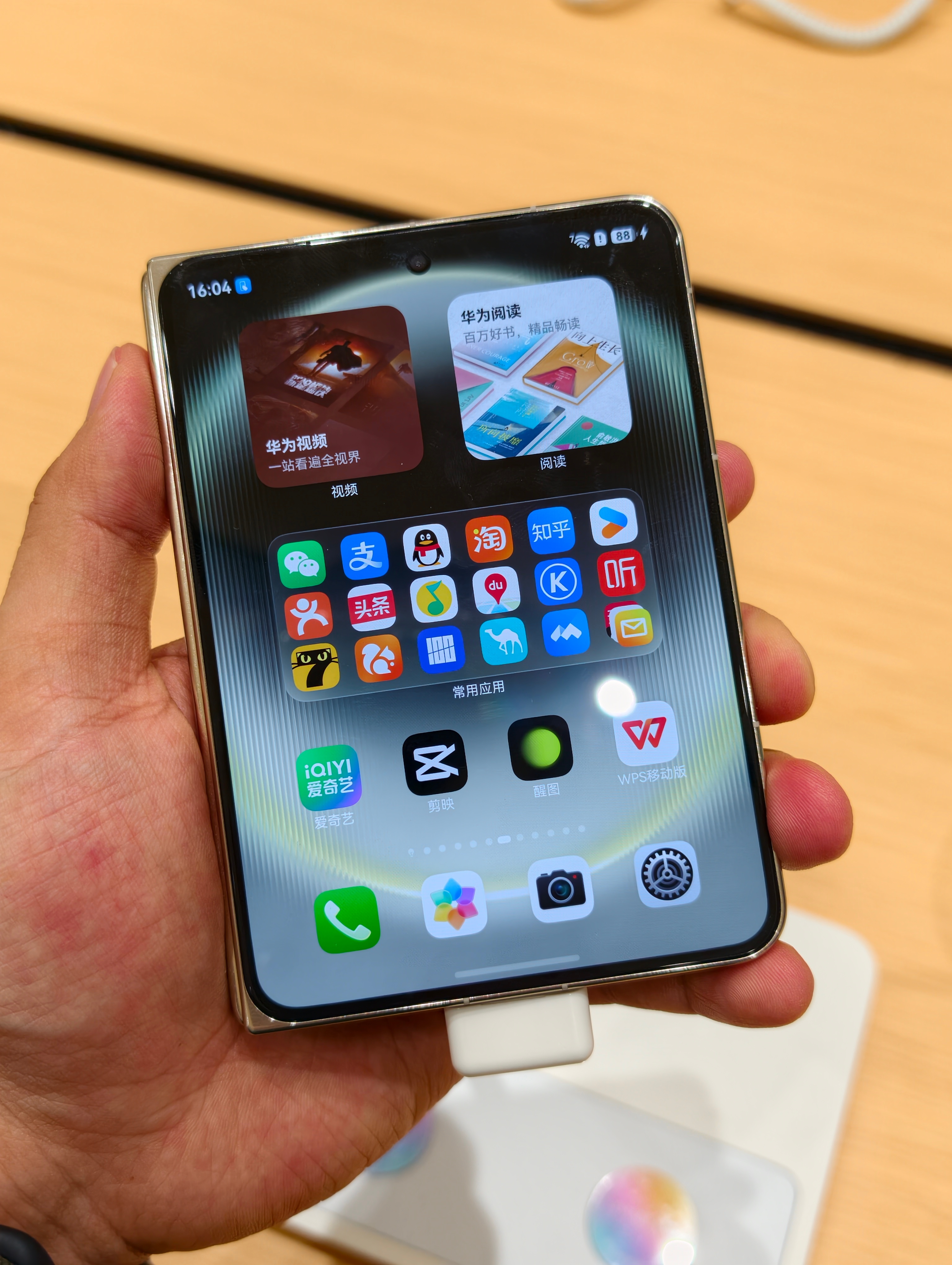 华为PuraXMax摸到了,拿在手里真的像一个小书本,打开旋转90度又是一个