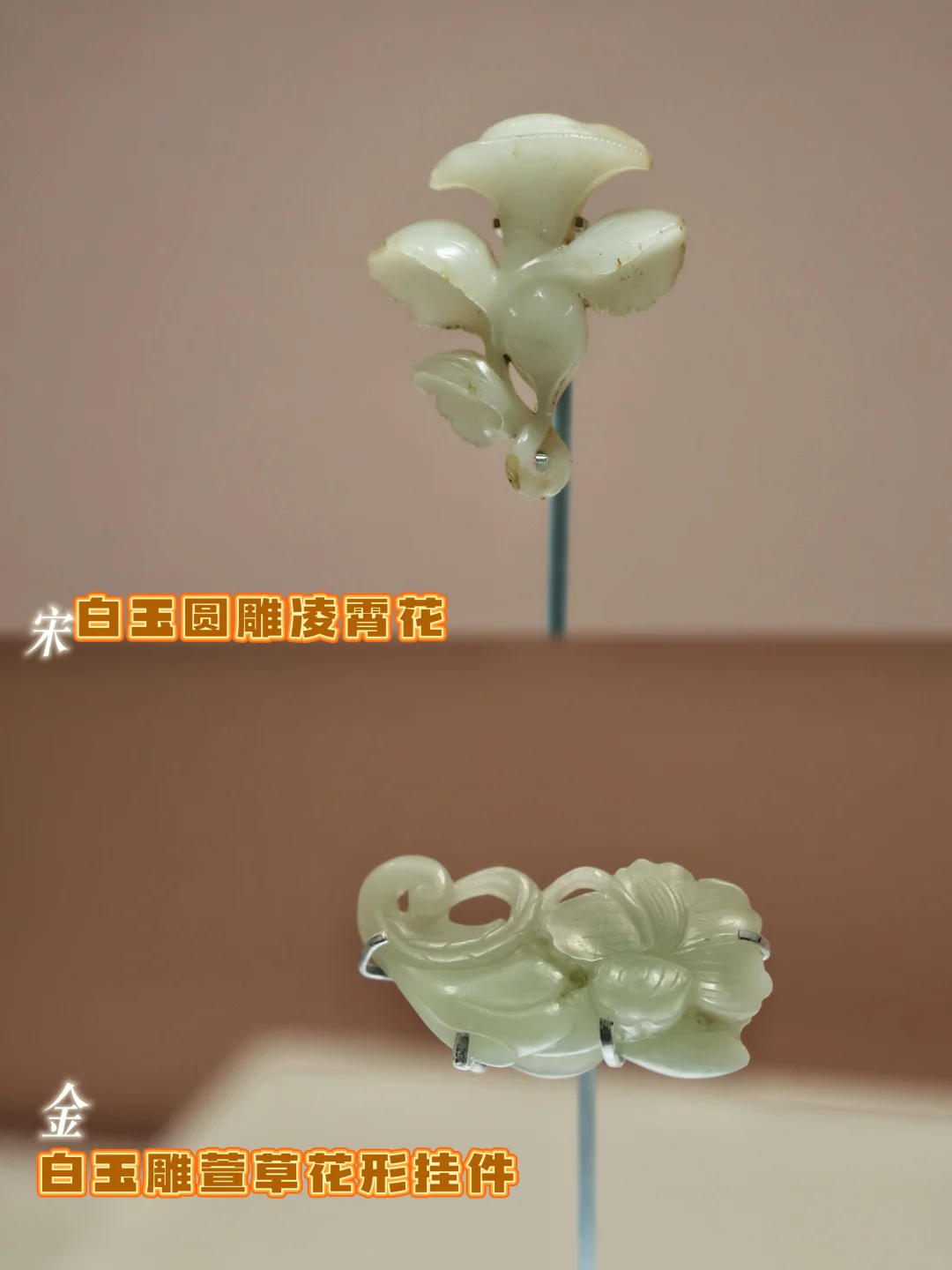 🌸宋金白玉凌霄花、萱草玉饰:灵动娇美,是古人佩戴在身的随身浪漫。
